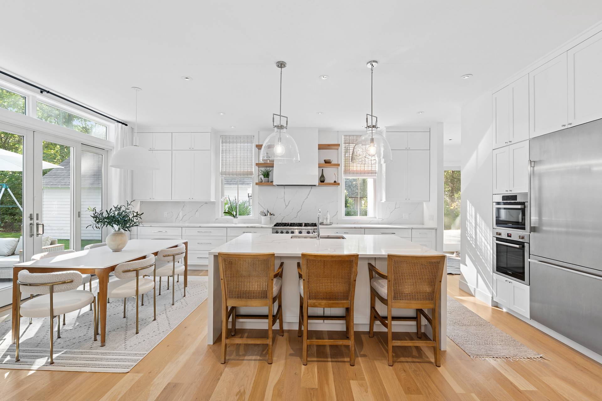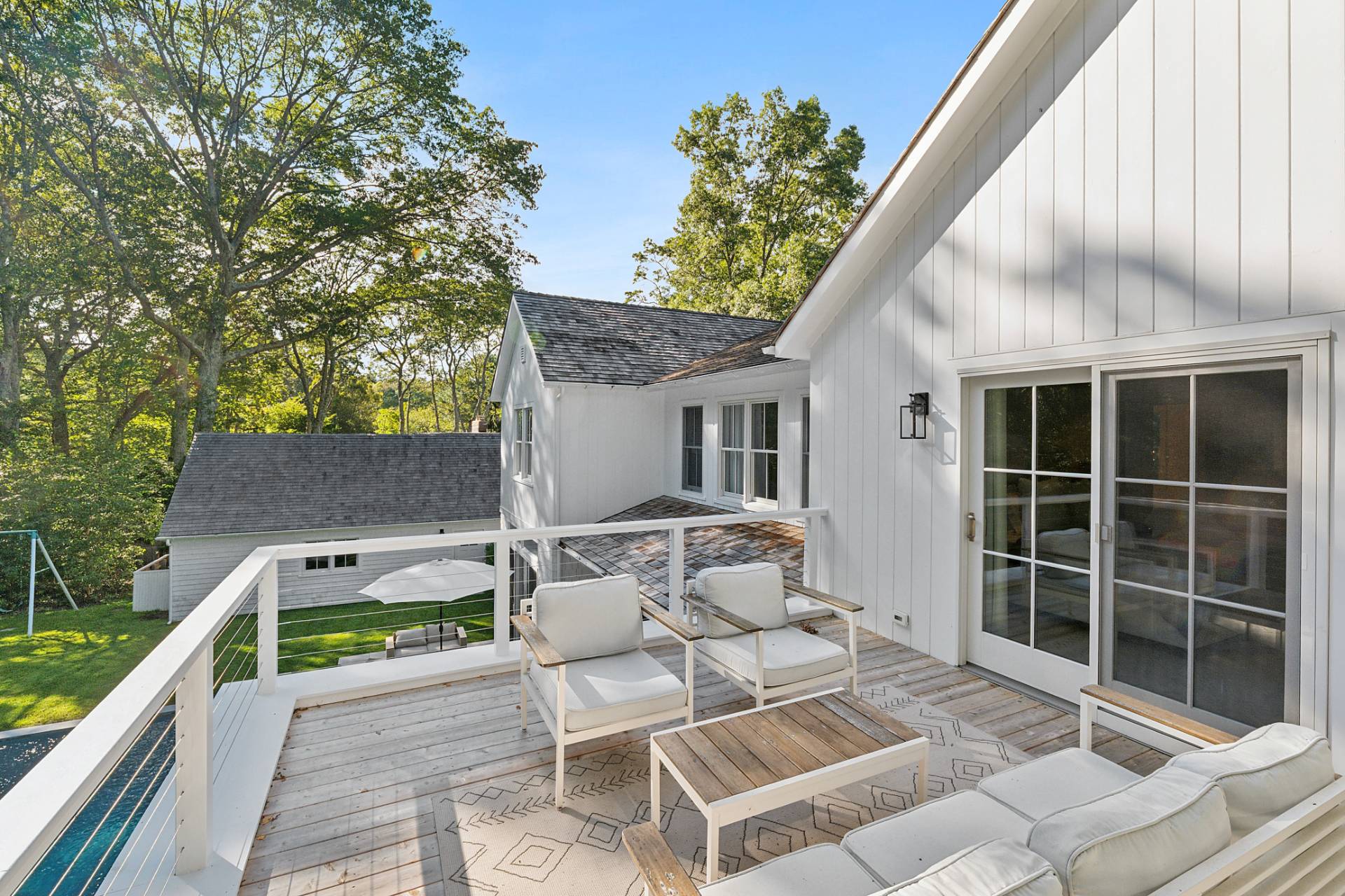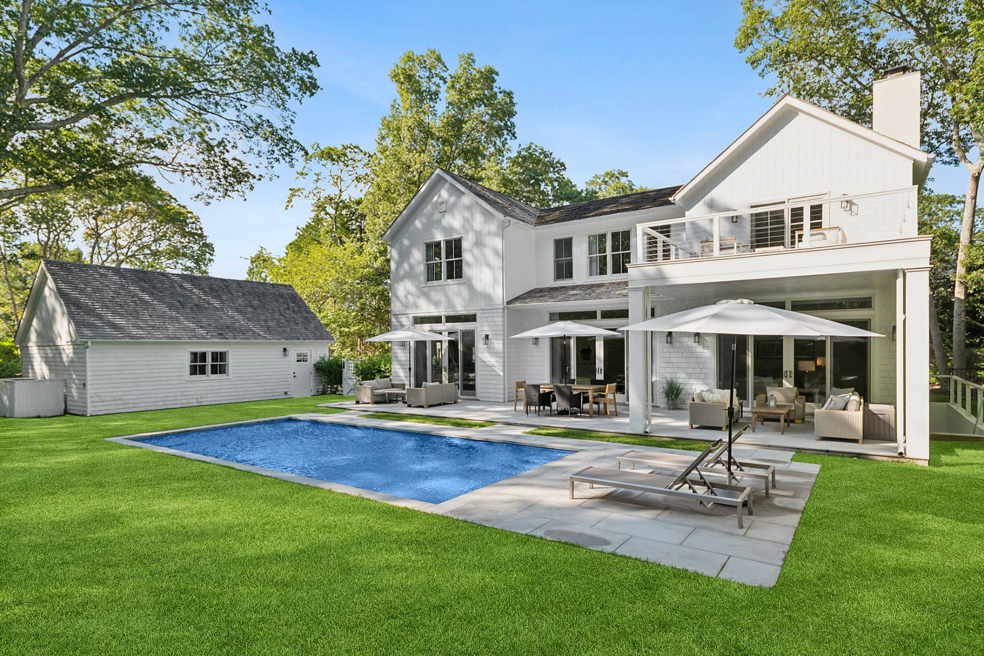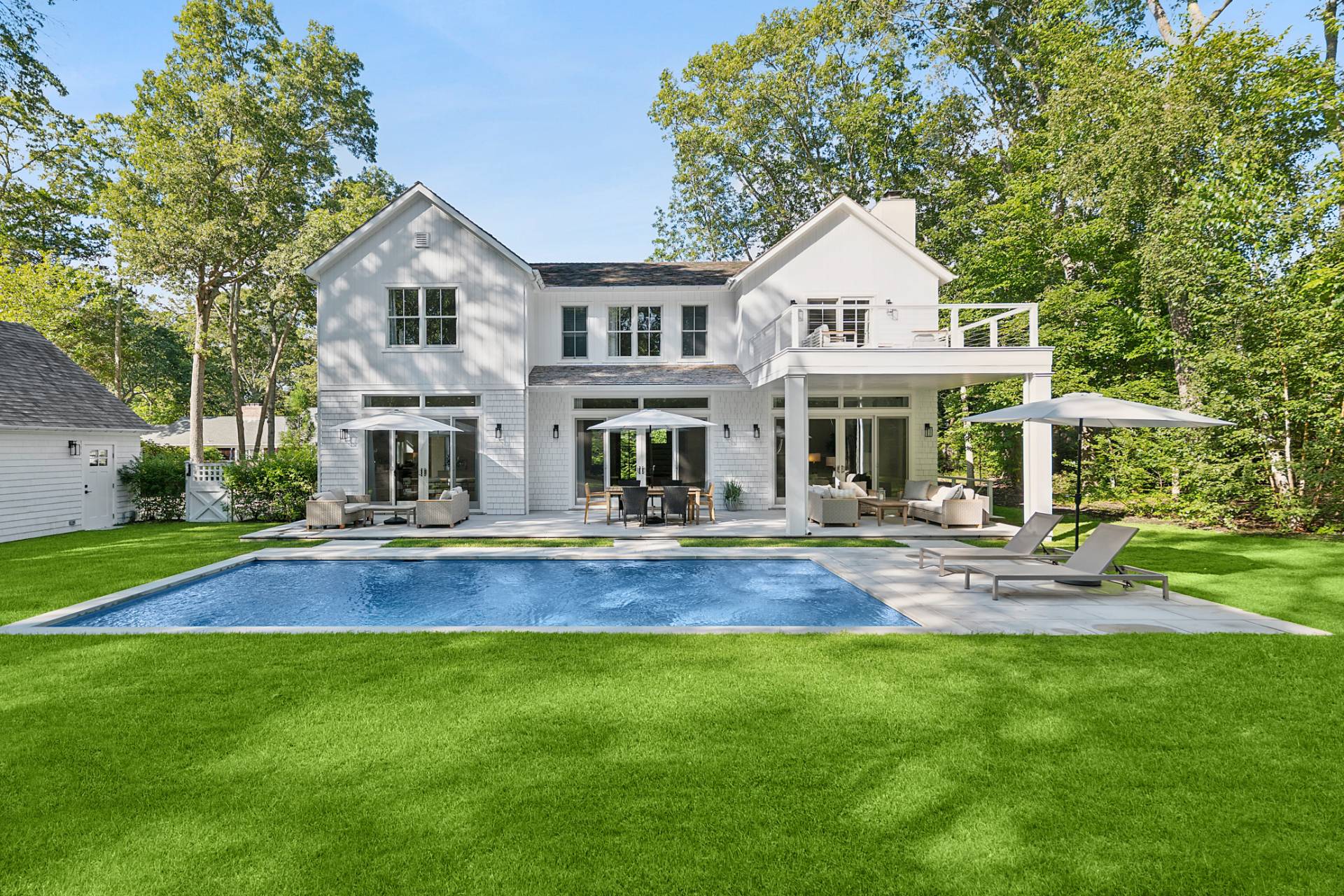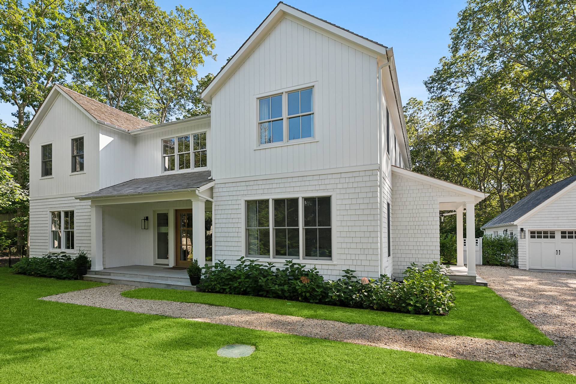 Perfectly located just minutes from East Hampton Village and iconic Main Beach, 53 Wireless Road places you at the crossroads of world-class dining, upscale shopping, and the Hamptons' signature coastal charm. 5,000 square feet of meticulously designed living space on three levels on a secluded and private half acre with southern exposure. Six spacious bedrooms and luxurious baths all en-suite, each thoughtfully crafted to offer a harmonious blend of comfort, sophistication, and privacy. The home's layout effortlessly balances open and airy spaces. Step inside to discover an abundance of natural light and a great room that seamlessly connects the living room and eat-in chef's kitchen outfitted with top-tier appliances and sleek, modern finishes. Clean architectural lines elevate the space with timeless appeal. Formal dining and powder room, along with a main floor guest suite and side entrance mud room complete the first floor. Upstairs a primary suite that feels like its own serene retreat with spa bath, private balcony, and WIC. 3 additional guest suites and laundry complete the second story. The fully finished lower level expands your living potential with a media room, expansive rec space, and an additional bedroom and full bath-ideal for entertaining guests or enjoying a quiet weekend escape. Outback, a heated gunite pool is nestled within professionally landscaped grounds, offering the perfect private oasis for sun-drenched summer days. An over-sized detached 2 car garage completes this offering. From its impeccable design to its prime location, 53 Wireless Road is a turnkey retreat that captures the very best of modern indoor-outdoor Hamptons living