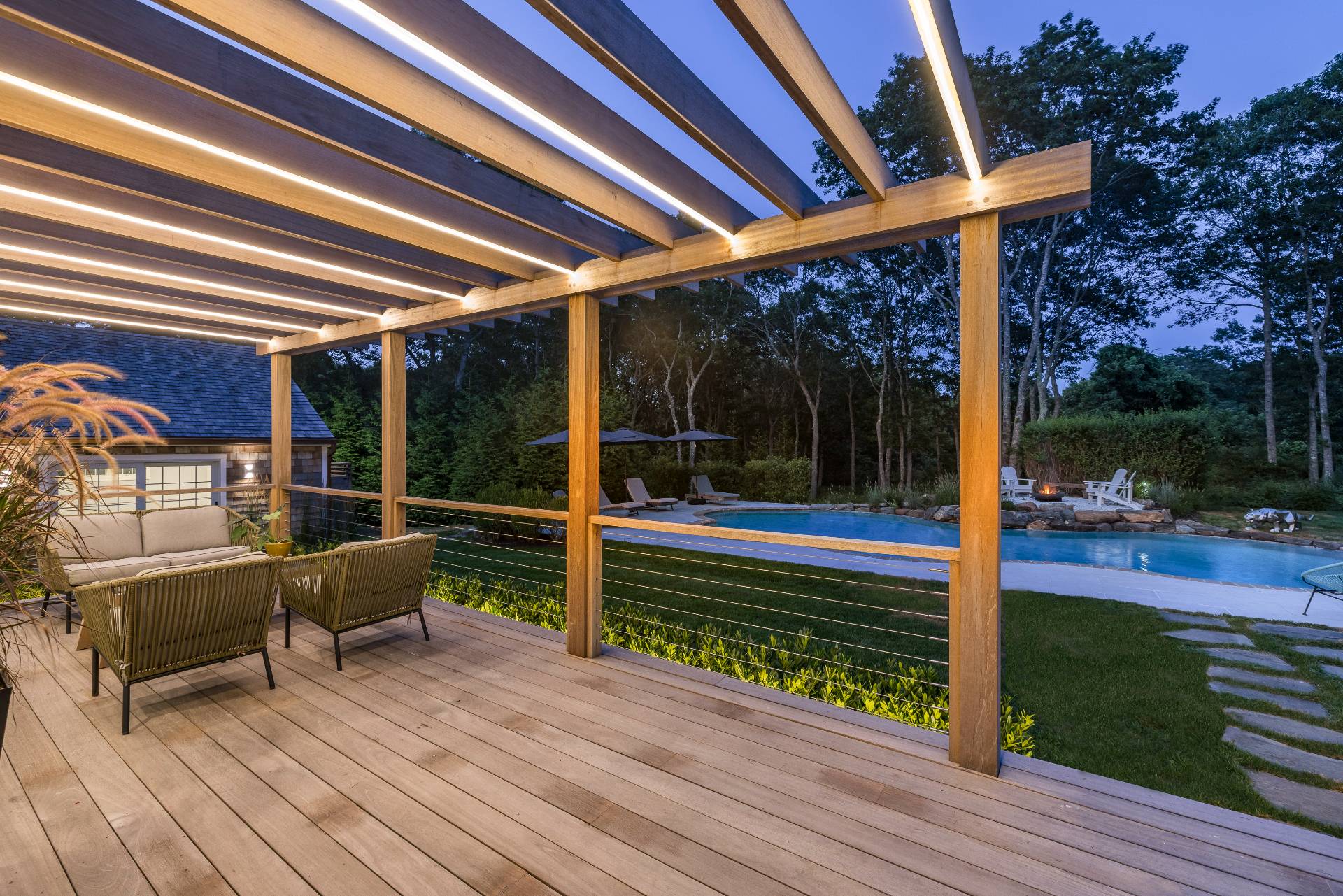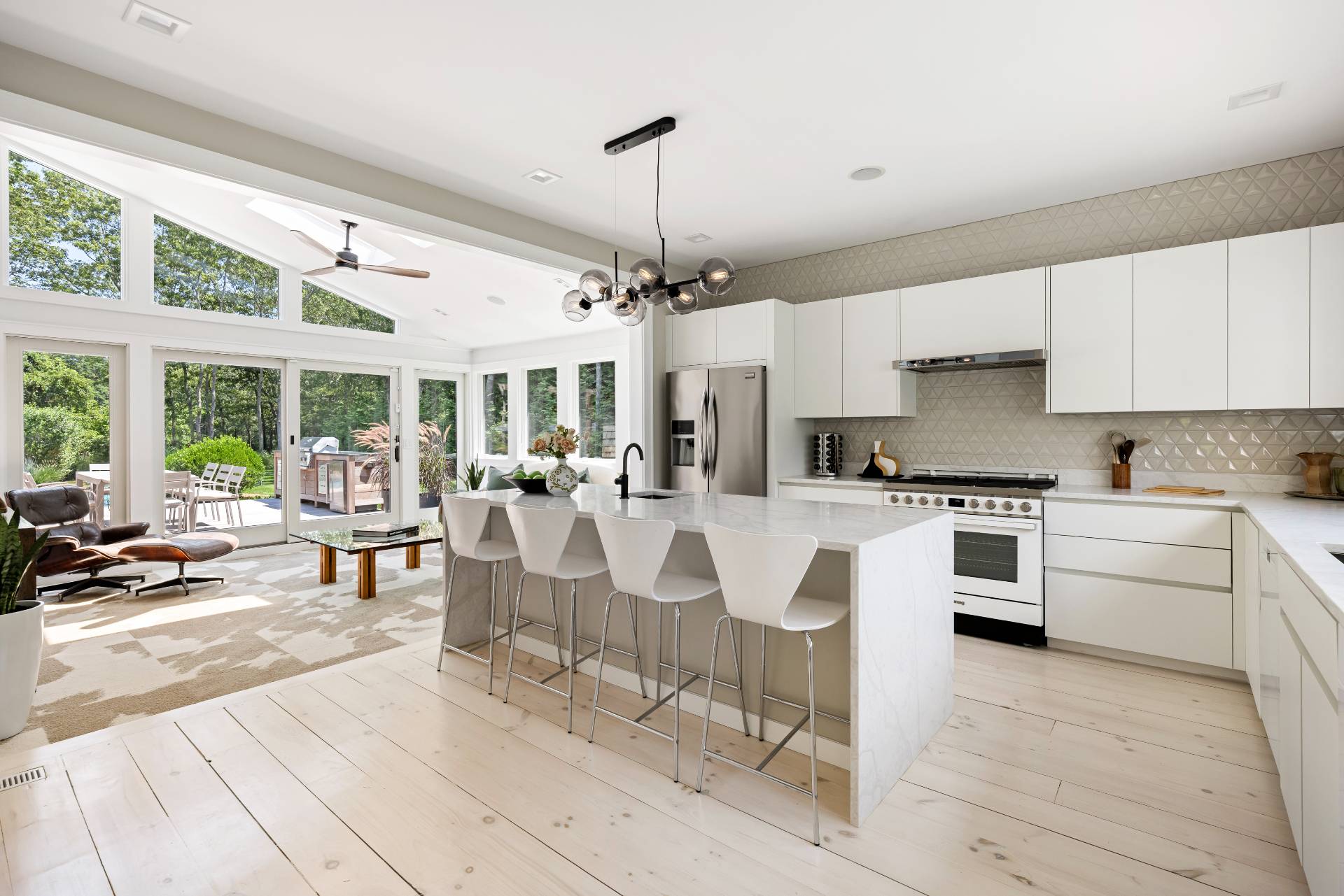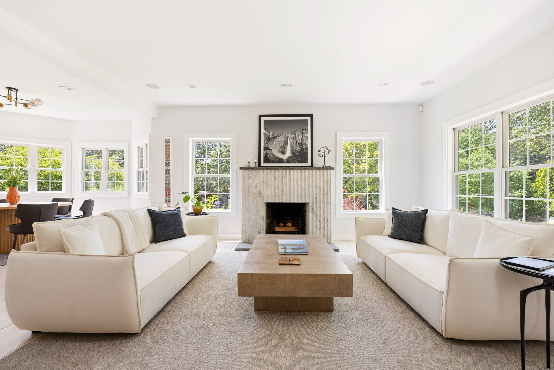 BEING SOLD TURN-KEY (art-work not included) Conceived by award-winning architect Joseph Eisner, AIA, LEED AP, and newly completed to perfection, this modern masterpiece is the latest creation of a preeminent home design aficionado, featured in prominent publications and sought-after by the most discerning. Nestled in a quiet, coveted cul-de-sac, 20 Cove Neck Lane boasts an incomparable location, resting moments from beautiful Fish Cove, minutes to Southampton Village, North Sea Harbor, Peconic Bay and pristine ocean beaches, as well as the Southampton Youth Services Fitness Center and Tennis Club. Set on a lush .84 acres of elevated grounds, the exquisite 4-bedroom 4.5-bathroom gem abuts 10 acres of reserve land for the ultimate peace and privacy. An expansive 4375 square feet of luxurious living space is met by serene and stunning outdoor environs that afford a perfect backdrop for entertaining. Lounge and dine alfresco on the generous wood deck with a built-in grill and fridge, or enjoy summer swims in the sparkling in-ground pool. Refined interiors are light, bright and spacious, offering gorgeous views of greenery and an open-concept layout for the host. The wonderful great room with wide-plank wood floors and a sleek wood-burning fireplace is complemented by a lovely dining alcove enveloped by windows. The brand new state-of-the-art kitchen is tailored to the chef, styled in white with abundant cabinetry, stone countertops, and a large island with extra seating. A sky-lit sunroom with a ceiling fan and tile flooring extends the kitchen/party area, offering huge sliding glass doors leading to the pool and outdoor oasis. Among the additional highlights are primary suites on 2 levels (one accessing the deck and pool), 3 additional guest rooms, all new high-end spa baths, a newly-added finished lower level, full laundry room with storage, refreshing outdoor shower, and oversized detached 2-car garage. Every detail of this exceptional upscale home has been thoughtfully considered for optimal aesthetics, functionality, and sustainability. Topping the allure is the premier address, in close proximity to all the attractions of Southampton, Bridgehampton, Sag Harbor and Water Mill, and an easy commute to Manhattan!
