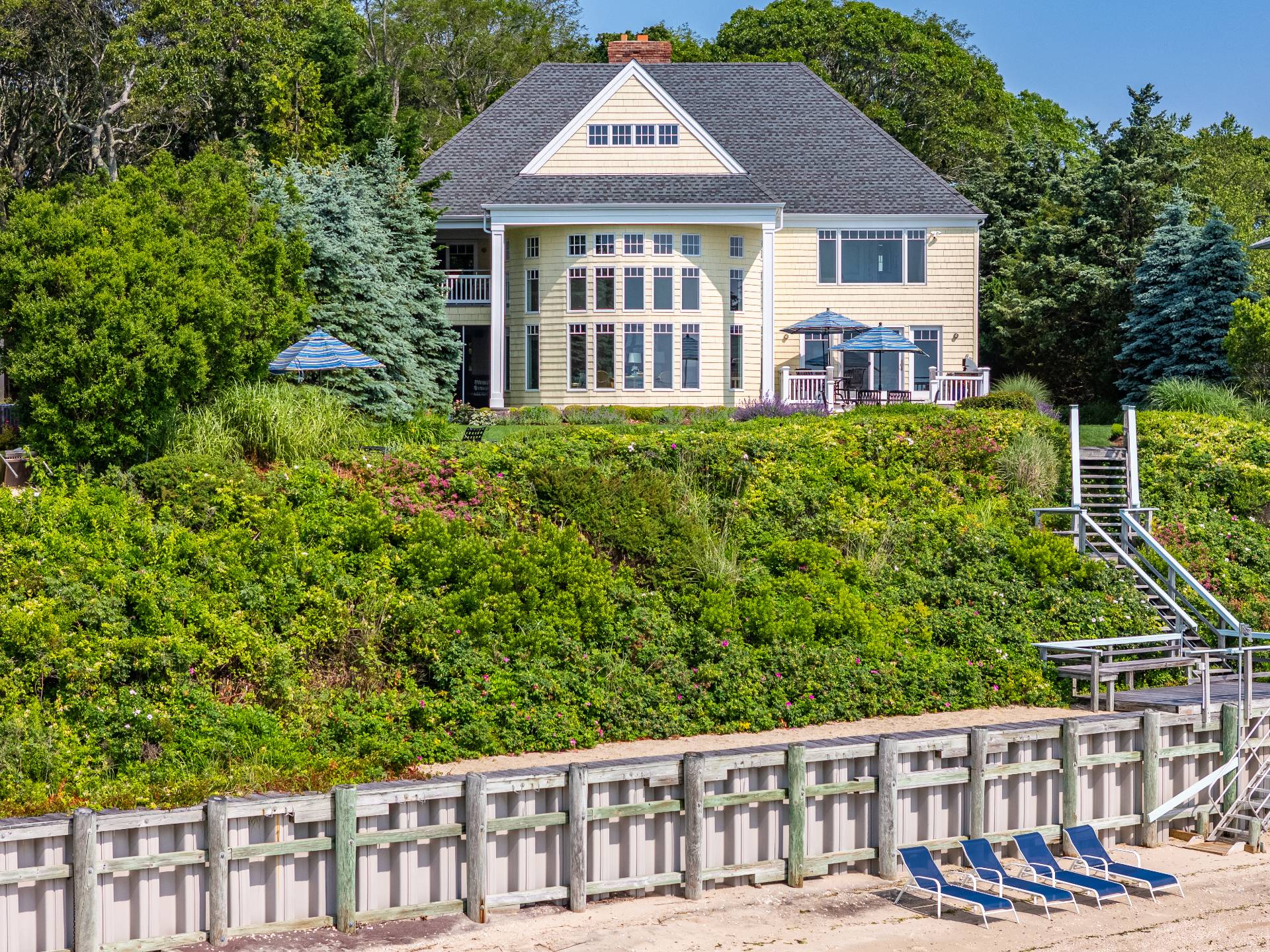 Wake up to water views and 100 feet of bay beach that instantly hits your refresh button. This stunning bayfront features 4 beds, 3 full baths, an office with its own porch, a gourmet and entertainers' kitchen, an incredible open floorplan, great for gatherings or spreading out in peace. A laundry room you dream of, 3 decks, a built-in grill, ice maker, wine cellar and a full house generator so you never lose power. Road to Bay properties like this are rare and are coveted on the boulevard. This could be you!