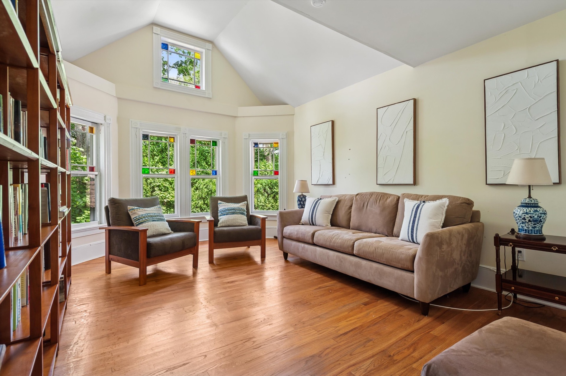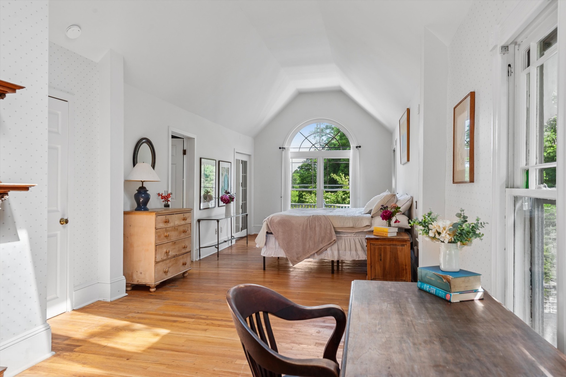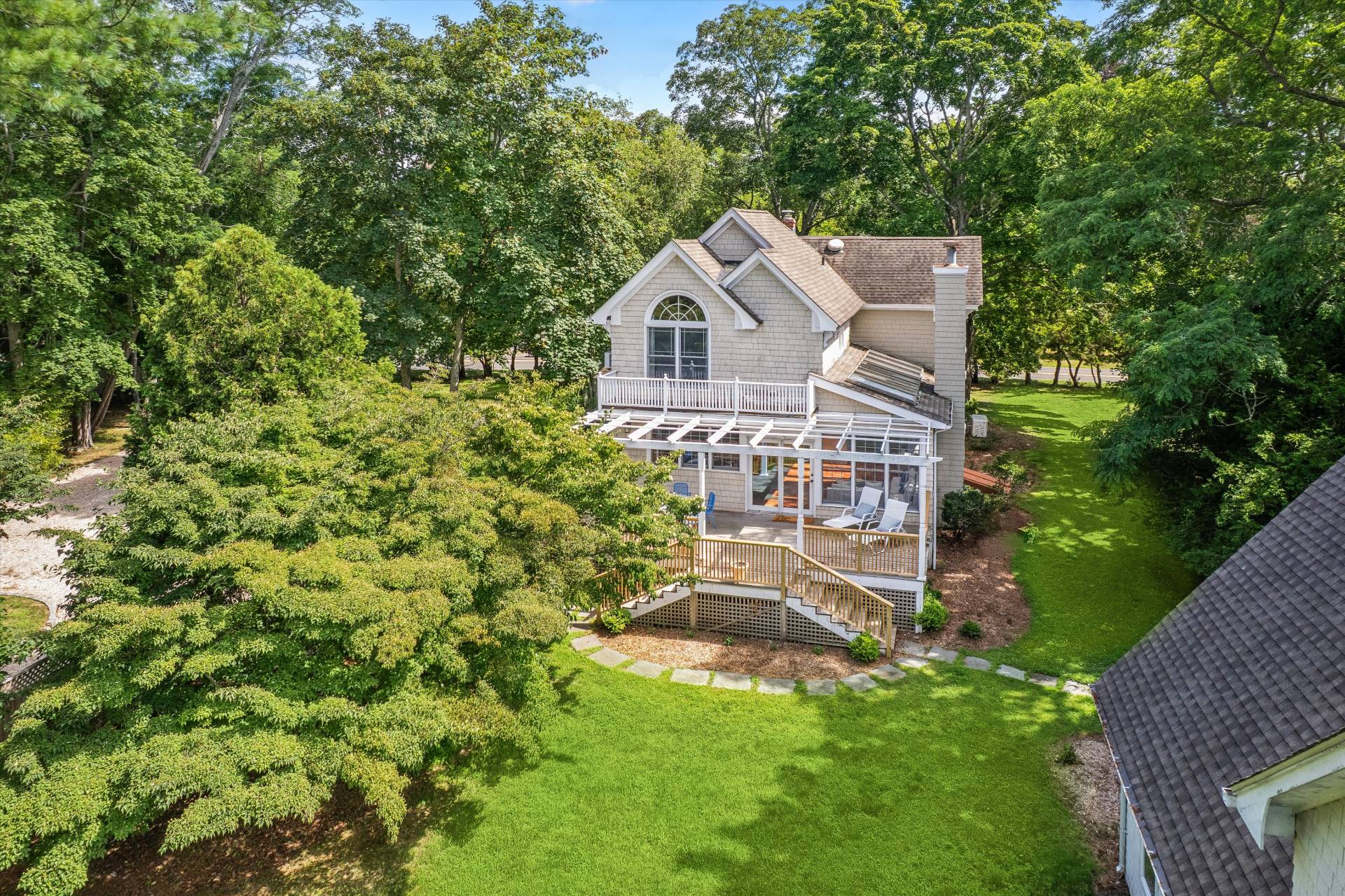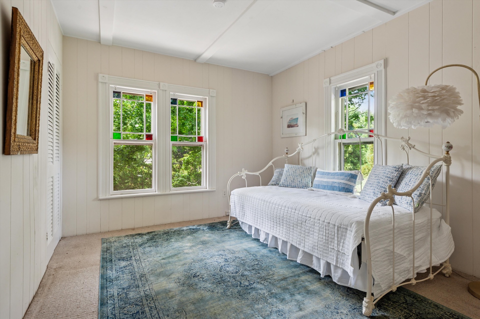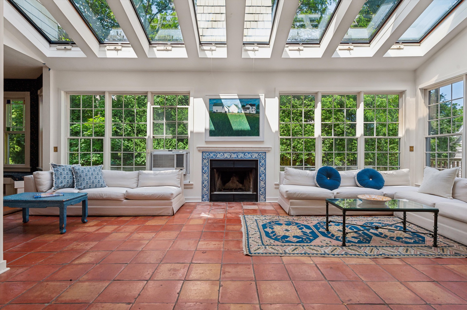 Set across two separate lots totaling 2.24 acres-21 Congdon (0.68 acres with residence and "artist studio" shell) and 23 Congdon (1.56 acres)-this exceptional property offers 186± feet of frontage on the peaceful waters of Lily Pond. Made for modern day entertaining, a wide front porch sets the tone for the gracious interiors. Step into the welcoming entry foyer where original stained glass windows transoms scatter dappled light across the interiors in every room on both floors, infusing the space with timeless character throughout the home. To the left, a light-filled parlor with a fireplace and ornately carved original stone mantel opens into a cozy library nook featuring a window seat, custom built-ins, and space for intimate conversation. Toward the rear of the home, a generous open-plan kitchen and lounge area with skylights and a fireplace is perfect for entertaining or unwinding. A large island with cooktop and proper exterior ventilation anchors the kitchen, while a nearby powder room adds convenience. Sliding glass doors lead to a spacious and newly updated deck perfect for alfresco dining while enjoying views of Lily Pond. Off the kitchen, the formal dining room dazzles with original millwork, a grand crystal chandelier, and access to the outdoor veranda-perfect for relaxing in the shade with a book. Upstairs, the sunlit primary suite features dramatic half-moon windows, two walk-in closets, and a serene ensuite bath. Two additional rooms, perfect for children, guests or office space -one with vaulted ceilings-and a full bath complete the second level. Modern upgrades include a whole-house generator (installed in 2017) and a new gas heating unit. Also on the property is a 1,518-square-foot, two-story artist's studio-currently a blank canvas ready to be transformed to suit your vision. Centrally located and one block from Coecles Harbor, this home blends historic charm, natural beauty, and sprawling grounds-an exceptional opportunity in one of Shelter Island's most private enclaves. Anchored in local history, this Shelter Island Classic sits on the site of Jonathan Nicoll Havens' former estate, the "Great Central Mansion," and where the affectionately named historic "Sweet House" once stood circa 1886. Recent property taxes for 21 Congdon Road were $8,224.71 and property taxes for 23 Congdon Road were $2,380.05.