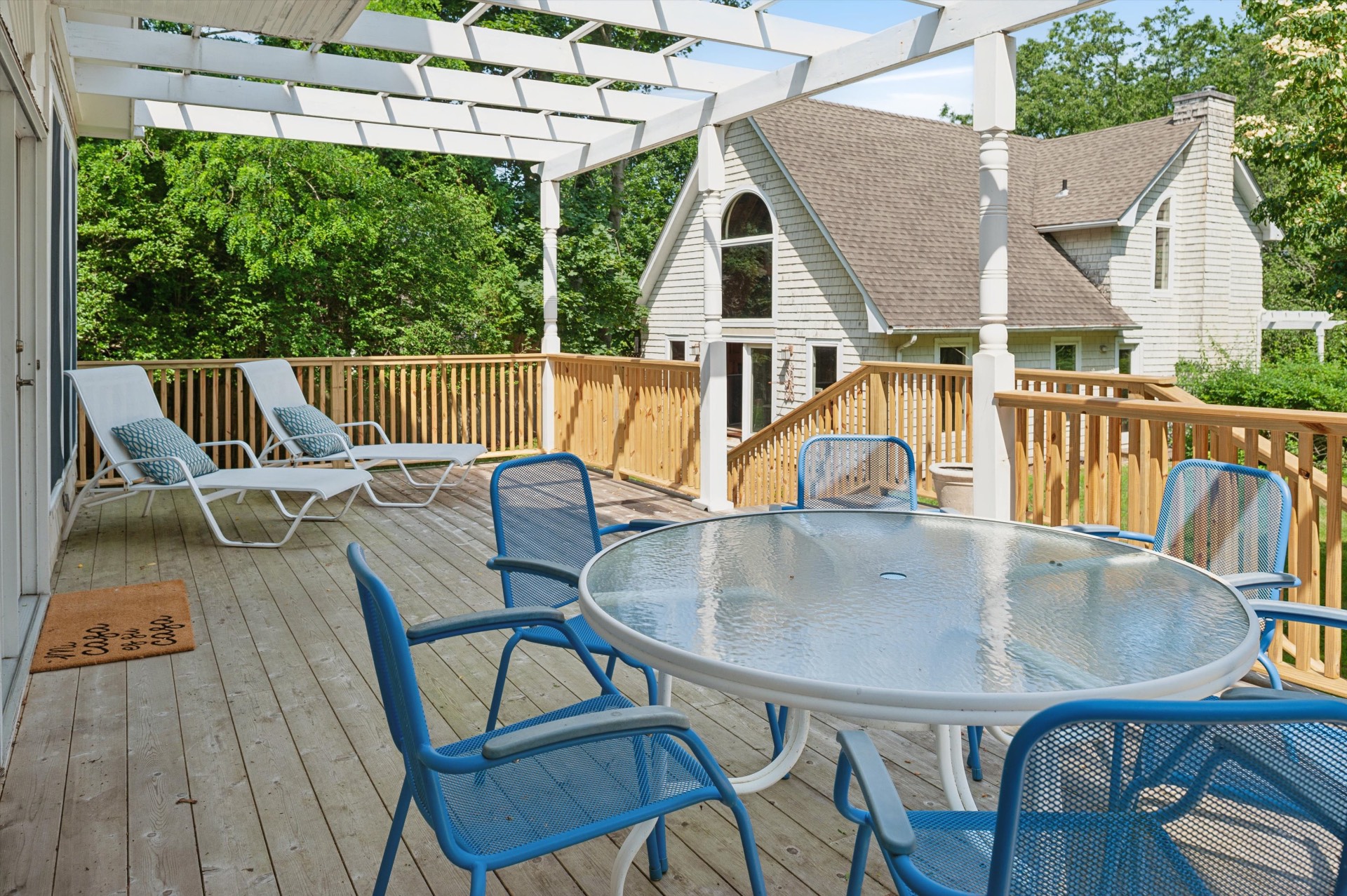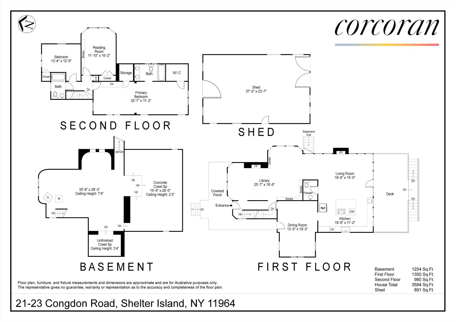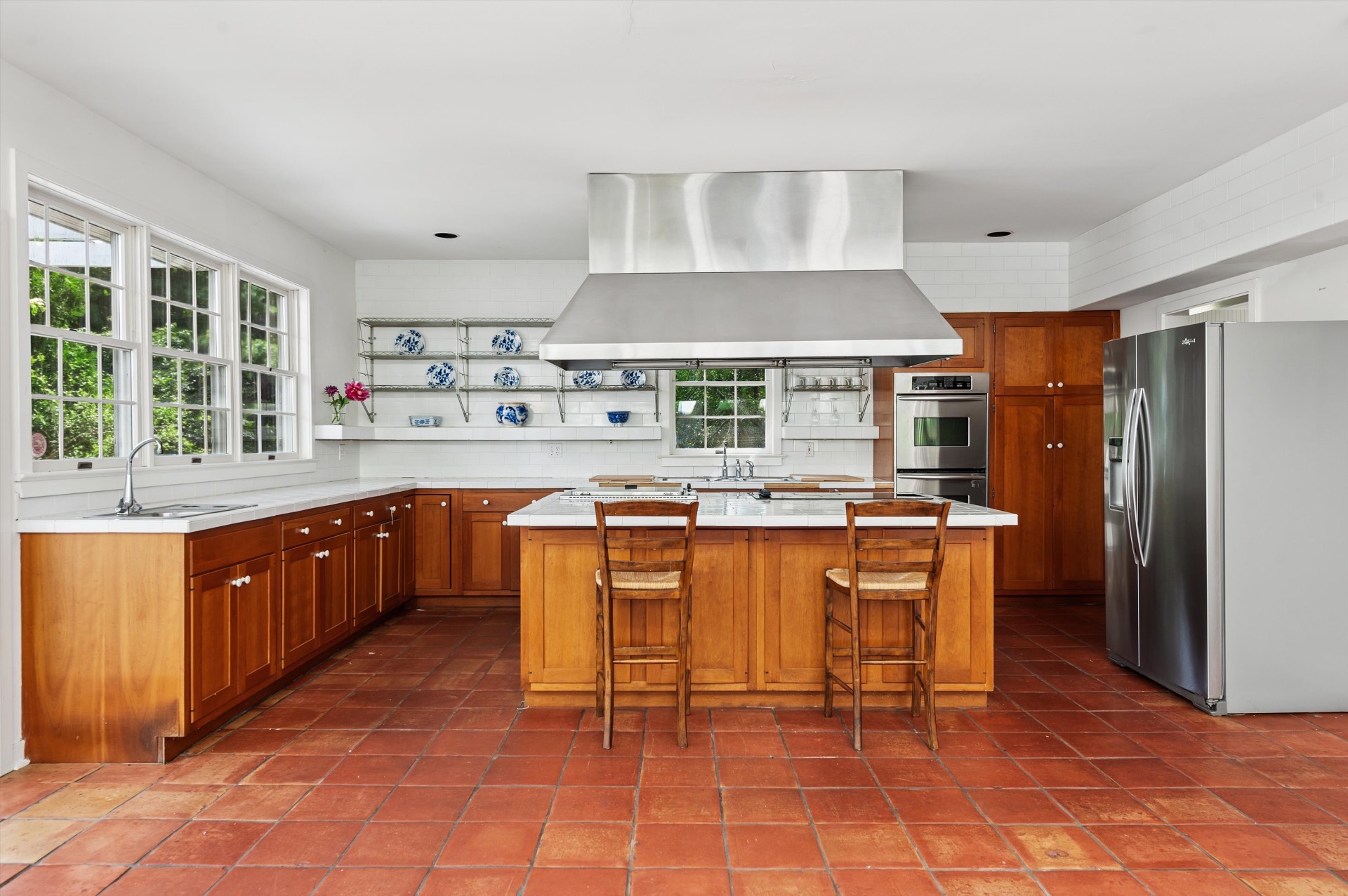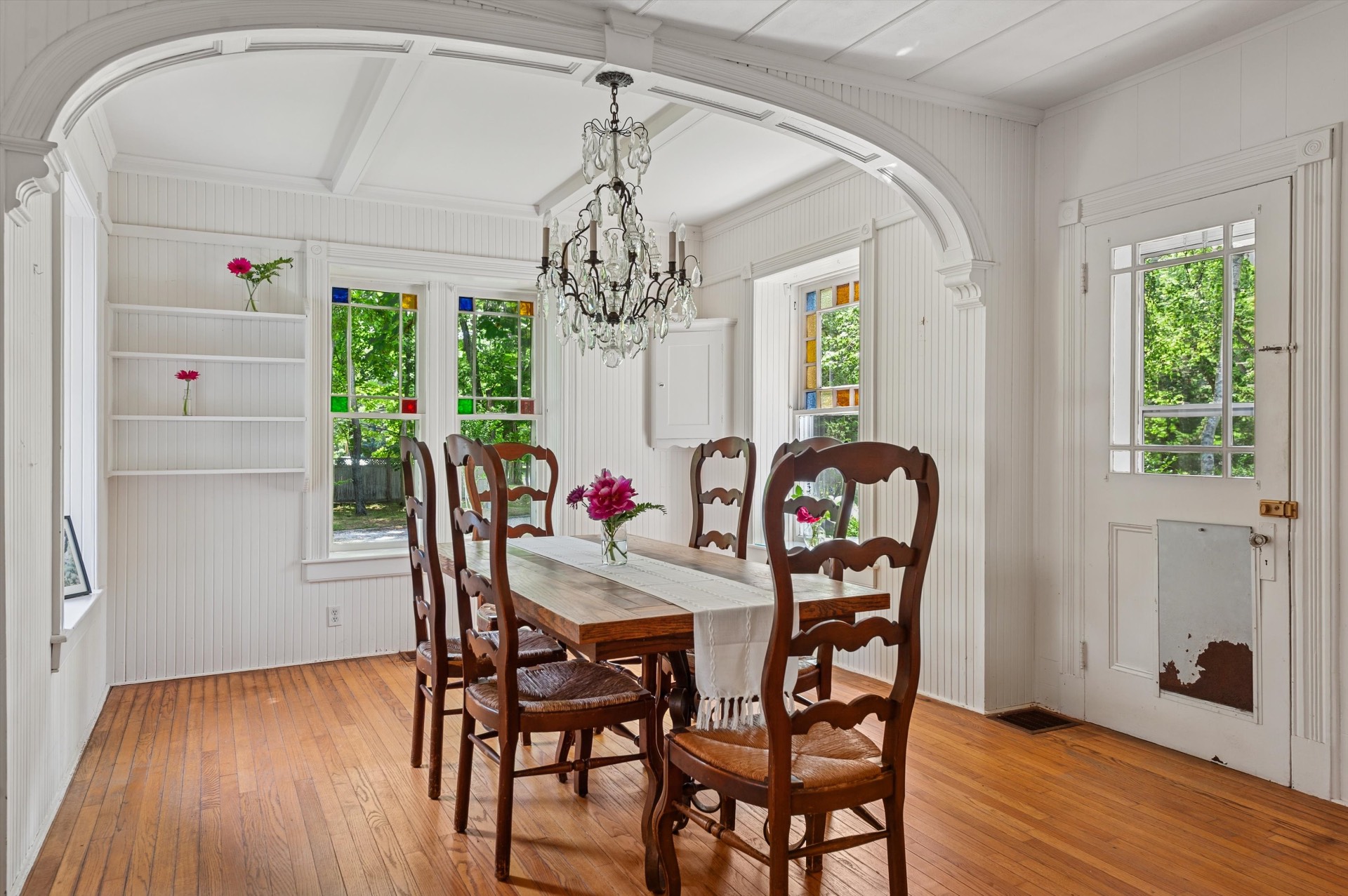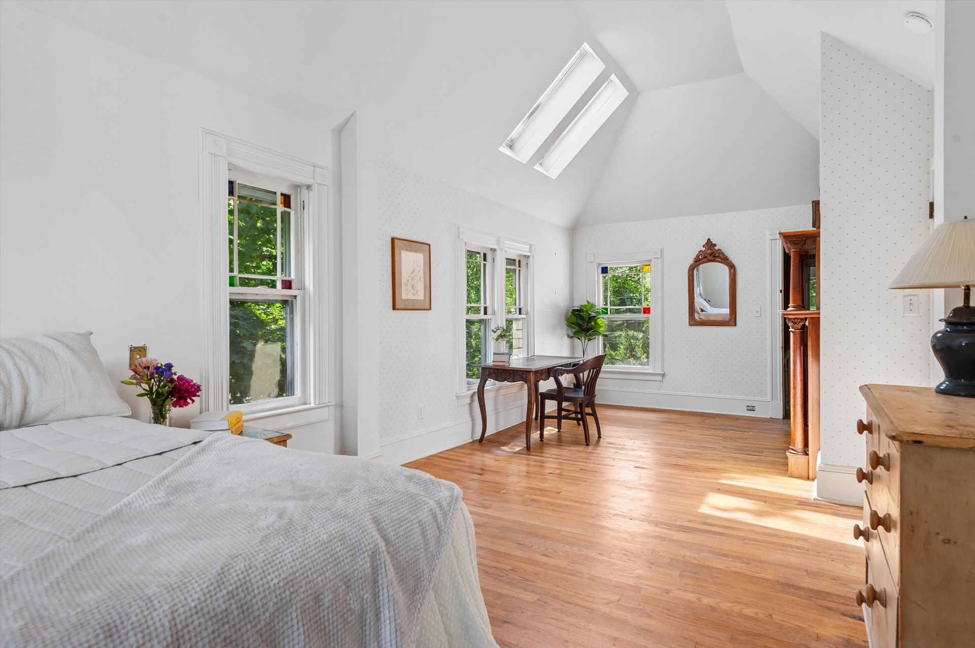 Set across two separate lots totaling 2.24 acres-21 Congdon (0.68 acres with residence and "artist studio" shell) and 23 Congdon (1.56 acres)-this exceptional property offers 186± feet of frontage on the peaceful waters of Lily Pond. Made for modern day entertaining, a wide front porch sets the tone for the gracious interiors. Step into the welcoming entry foyer where original stained glass windows transoms scatter dappled light across the interiors in every room on both floors, infusing the space with timeless character throughout the home. To the left, a light-filled parlor with a fireplace and ornately carved original stone mantel opens into a cozy library nook featuring a window seat, custom built-ins, and space for intimate conversation. Toward the rear of the home, a generous open-plan kitchen and lounge area with skylights and a fireplace is perfect for entertaining or unwinding. A large island with cooktop and proper exterior ventilation anchors the kitchen, while a nearby powder room adds convenience. Sliding glass doors lead to a spacious and newly updated deck perfect for alfresco dining while enjoying views of Lily Pond. Off the kitchen, the formal dining room dazzles with original millwork, a grand crystal chandelier, and access to the outdoor veranda-perfect for relaxing in the shade with a book. Upstairs, the sunlit primary suite features dramatic half-moon windows, two walk-in closets, and a serene ensuite bath. Two additional rooms, perfect for children, guests or office space -one with vaulted ceilings-and a full bath complete the second level. Modern upgrades include a whole-house generator (installed in 2017) and a new gas heating unit. Also on the property is a 1,518-square-foot, two-story artist's studio-currently a blank canvas ready to be transformed to suit your vision. Centrally located and one block from Coecles Harbor, this home blends historic charm, natural beauty, and sprawling grounds-an exceptional opportunity in one of Shelter Island's most private enclaves. Anchored in local history, this Shelter Island Classic sits on the site of Jonathan Nicoll Havens' former estate, the "Great Central Mansion," and where the affectionately named historic "Sweet House" once stood circa 1886. Recent property taxes for 21 Congdon Road were $8,224.71 and property taxes for 23 Congdon Road were $2,380.05.