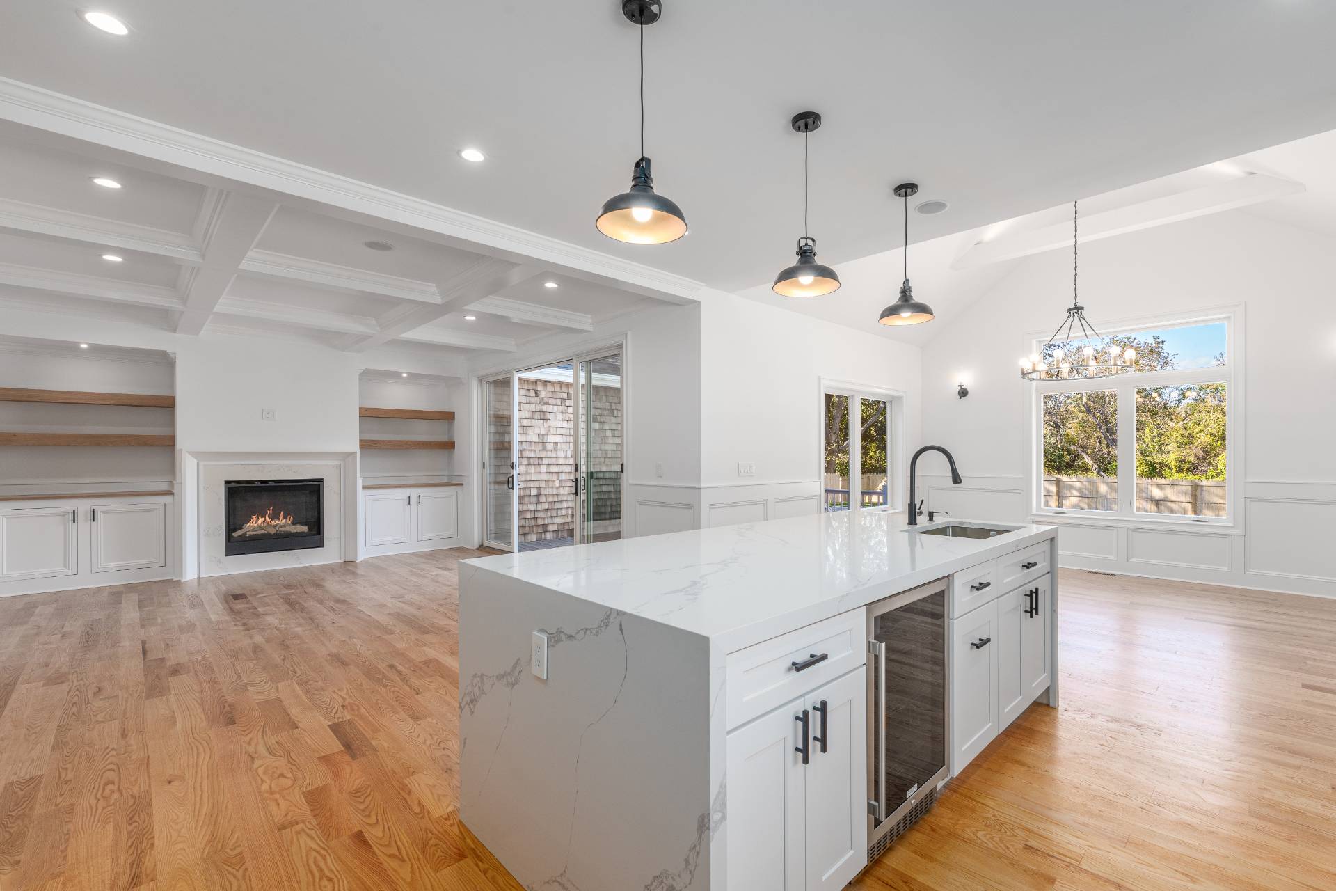 There's a certain ease to life on the North Fork and knowing you are never far from the water - where summer stretches into fall, where neighbors still wave, and where the days' quiet rhythm becomes your soundtrack. Welcome to 4,173 square feet of newly built grace on just under a half-acre in Southold, and one mile to Goose Creek Beach and two miles to Cedar Beach. This isn't your typical new construction. It's what happens when thoughtful design meets coastal sensibility - select red oak floors underfoot, light pouring through every room, and a 20x40 custom Gunite, heated saltwater pool framed by wide porcelain pavers that seem to dissolve into the landscape. A firepit means those October evenings by the pool aren't just possible - they're inevitable. This home is built for entertaining! And when you do, the kitchen is where this home really speaks: Galiano Moena 36" gas range, double wall ovens, counter-depth refrigerator, a wine cooler, and quartz countertops. The main floor boasts a primary suite that provides a private retreat, complete with a walk-in closet and an en-suite bath, ensuring a serene escape. Additional conveniences include a laundry area, a covered porch, a rear deck, and an attached two-car garage, enhancing the ease of everyday living. Three generously sized bedrooms offer ample space for guests, complemented by walk-in closets and two full bathrooms for added comfort on the second floor. Need more space? A fully finished basement featuring a wet bar with its own beverage fridge, a theatre room, a large recreation room and another possible bedroom with bathroom means this home checks every box for that peaceful North Fork state of mind!