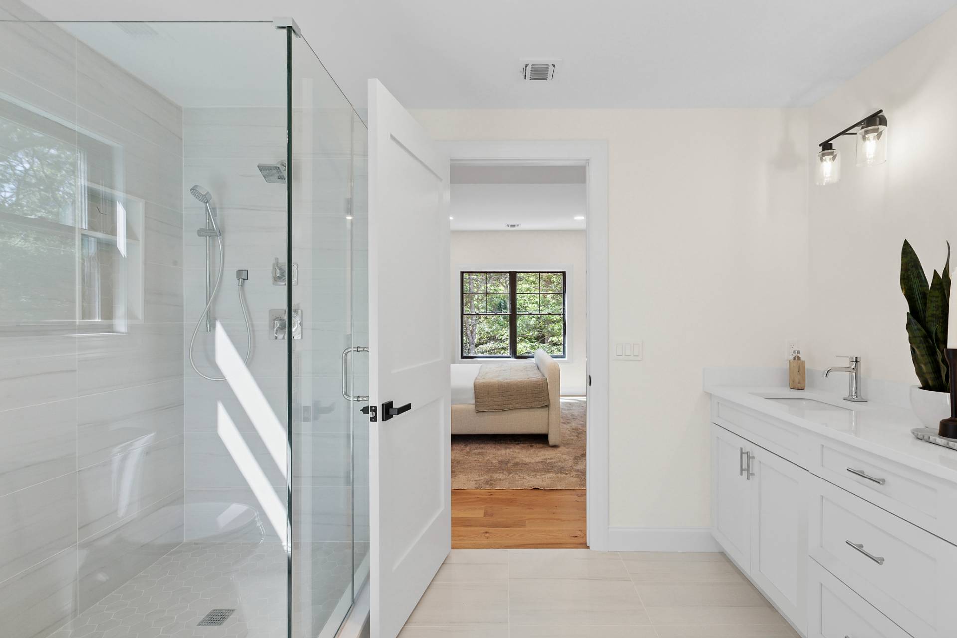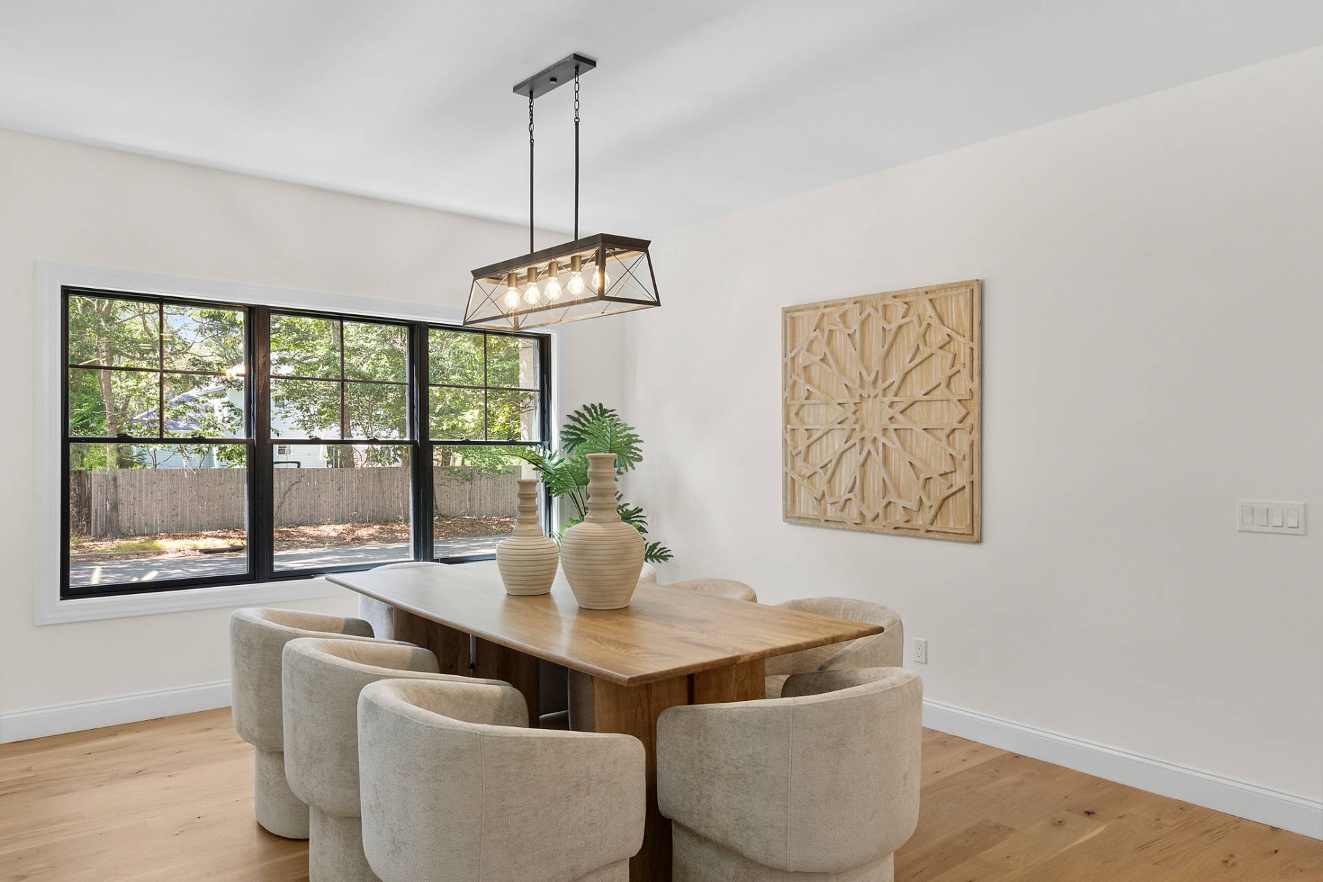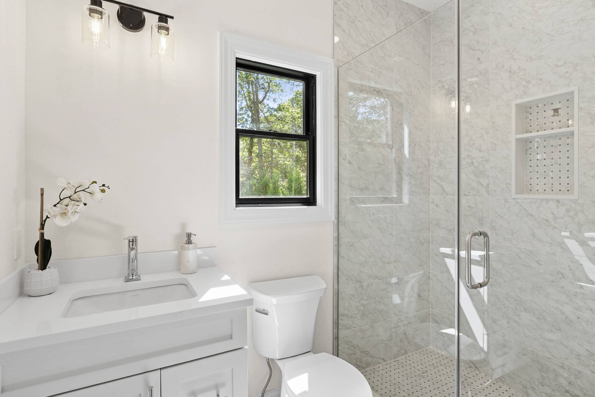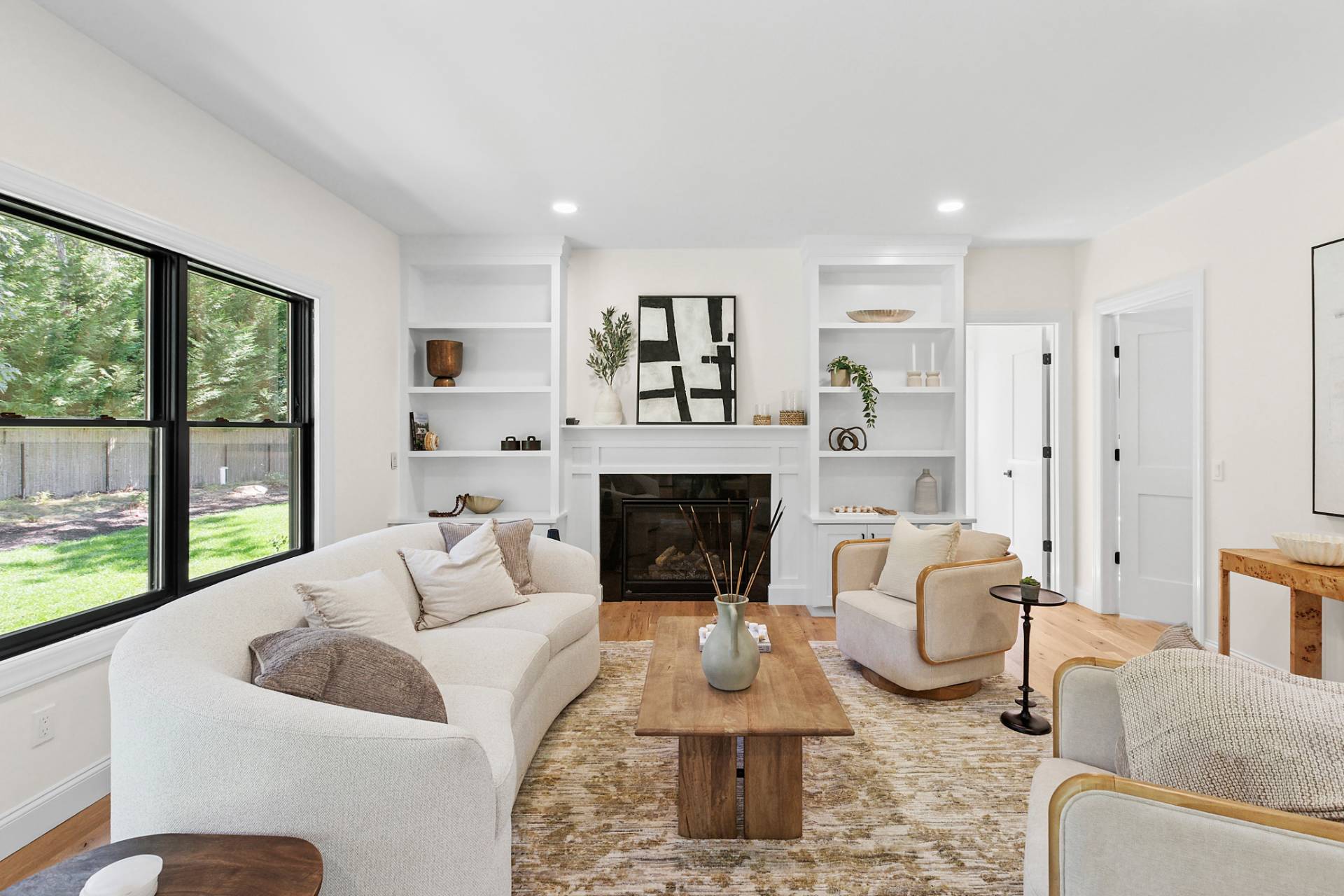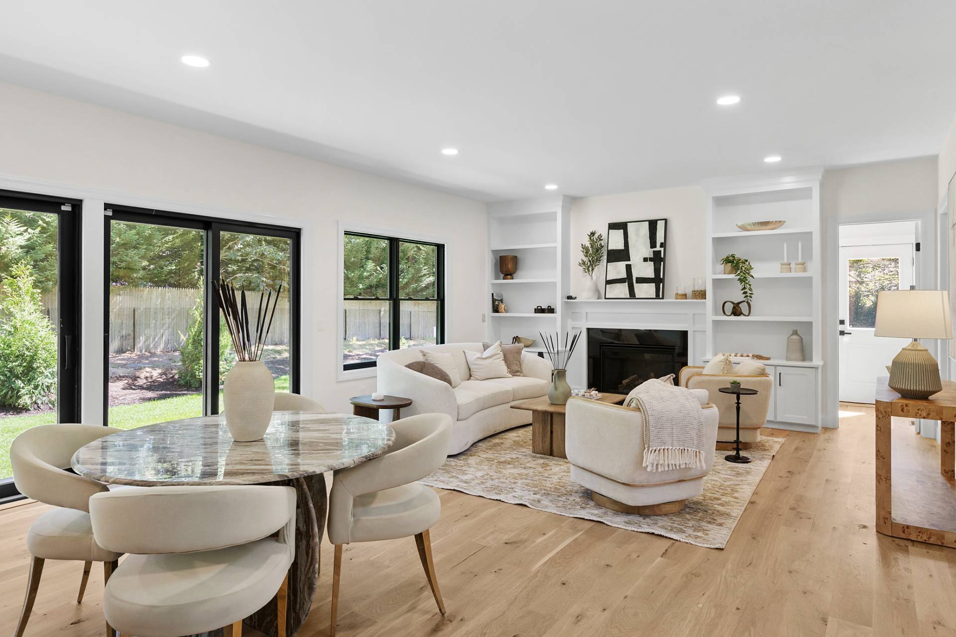 At 2.55 million, all in, some have called it East Hampton's best high-end new construction value! Fully finished and impeccably furnished with a CO expected on September 22, 2025, this brand-new designer residence by Southampton Building Corp., one of Long Island's most prominent master builders, offers nearly 4,000 square feet across three light-filled levels. Located on a pristine block and surrounded by mature native trees and perimeter evergreens, the extra-wide property delivers exclusivity and sublime privacy. From a financial perspective, this home should prove to be a very solid investment as the current price is well below its current replacement costs, as it was built pre-tariff, and its rental power approximates $150,000 for the summer. The residence's clean, open floor plan and modern architecture are matched by an interior of exceptional craftsmanship, featuring wide 6-inch white oak floors, artisanal black staircase railing integration, and a dramatic handcrafted lifestyle wall that anchors its airy layout. The showpiece chef grade kitchen which features custom double cabinetry, a dramatic full-height Cambria backsplash, a 2.5-inch mitered-edge island is truly stunning. 33 Delavan's outdoor grounds boast a 20' x 40' heated saltwater pool with bluestone coping as its centerpiece amidst a lushly landscaped yard. A first-floor en-suite bedroom adds flexibility, while the massive lower level with 10-foot volume ceilings, full egress windows, and covered walk-out offers great space for future media, gym, or guest quarters. This is a rare opportunity to own a fully completed, fully furnished new construction home in East Hampton with excellent investment metrics, ready for immediate occupancy with no compromises and no delays!