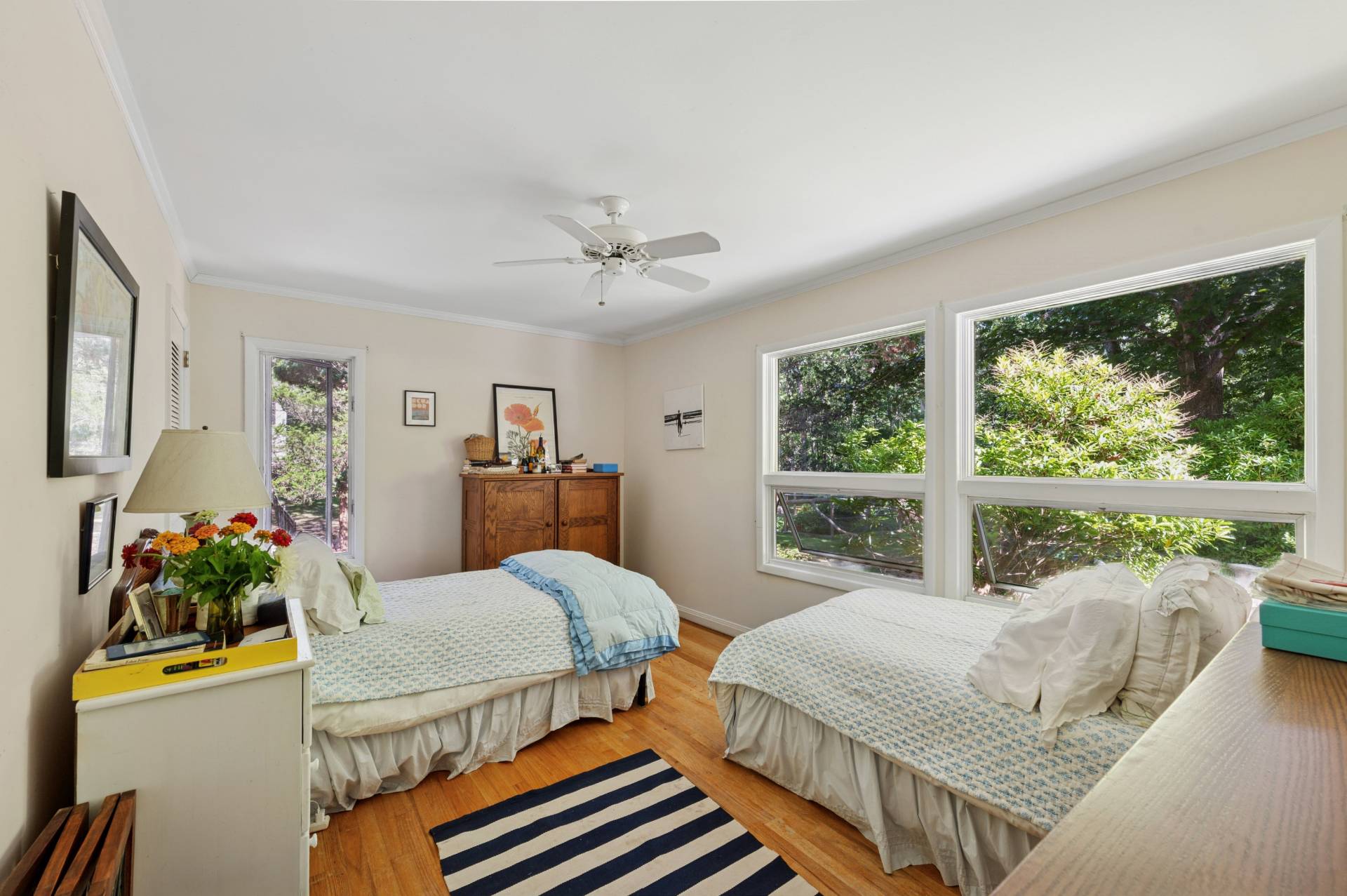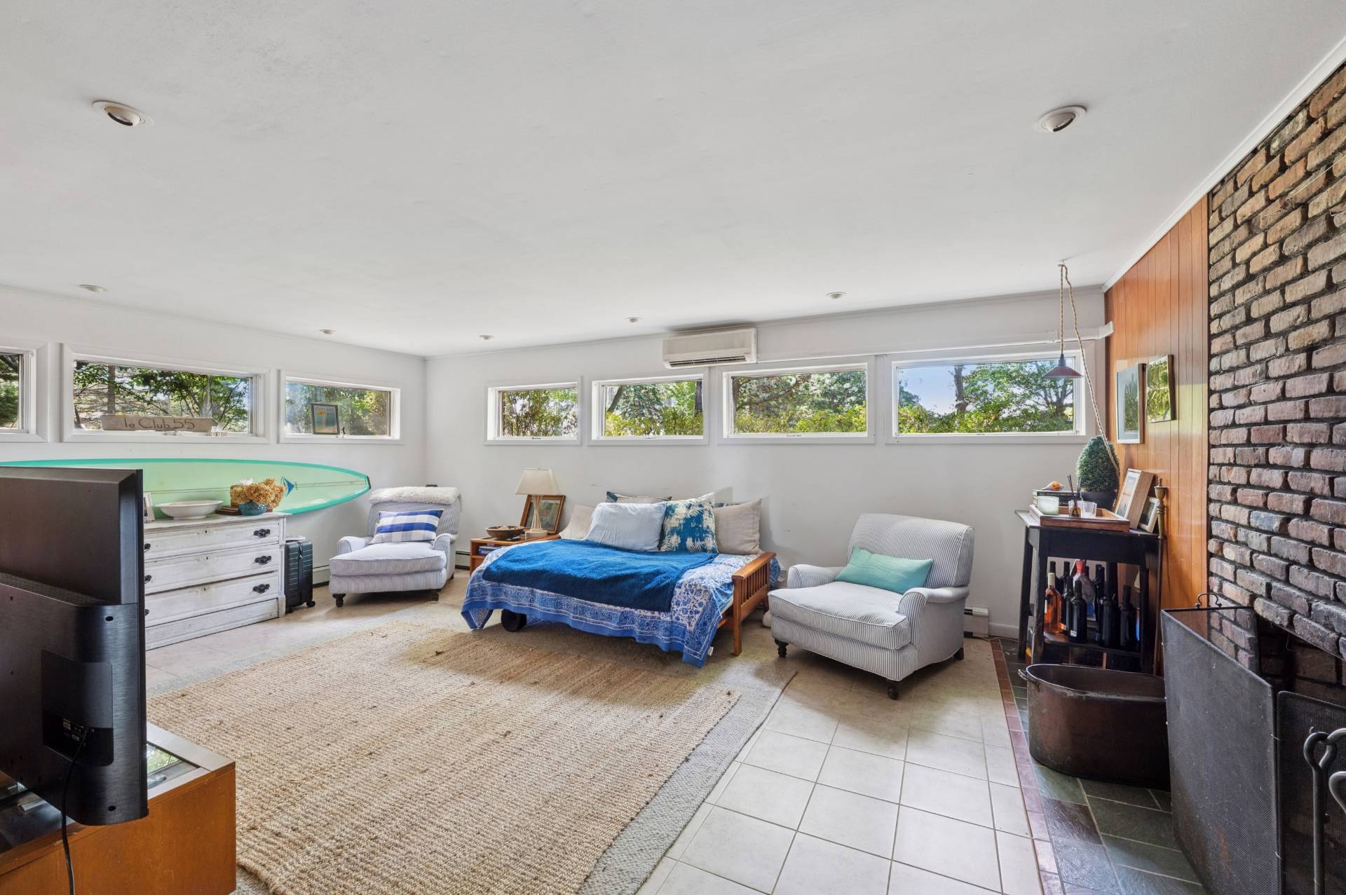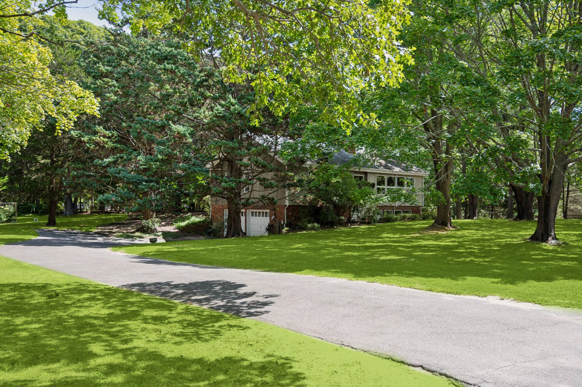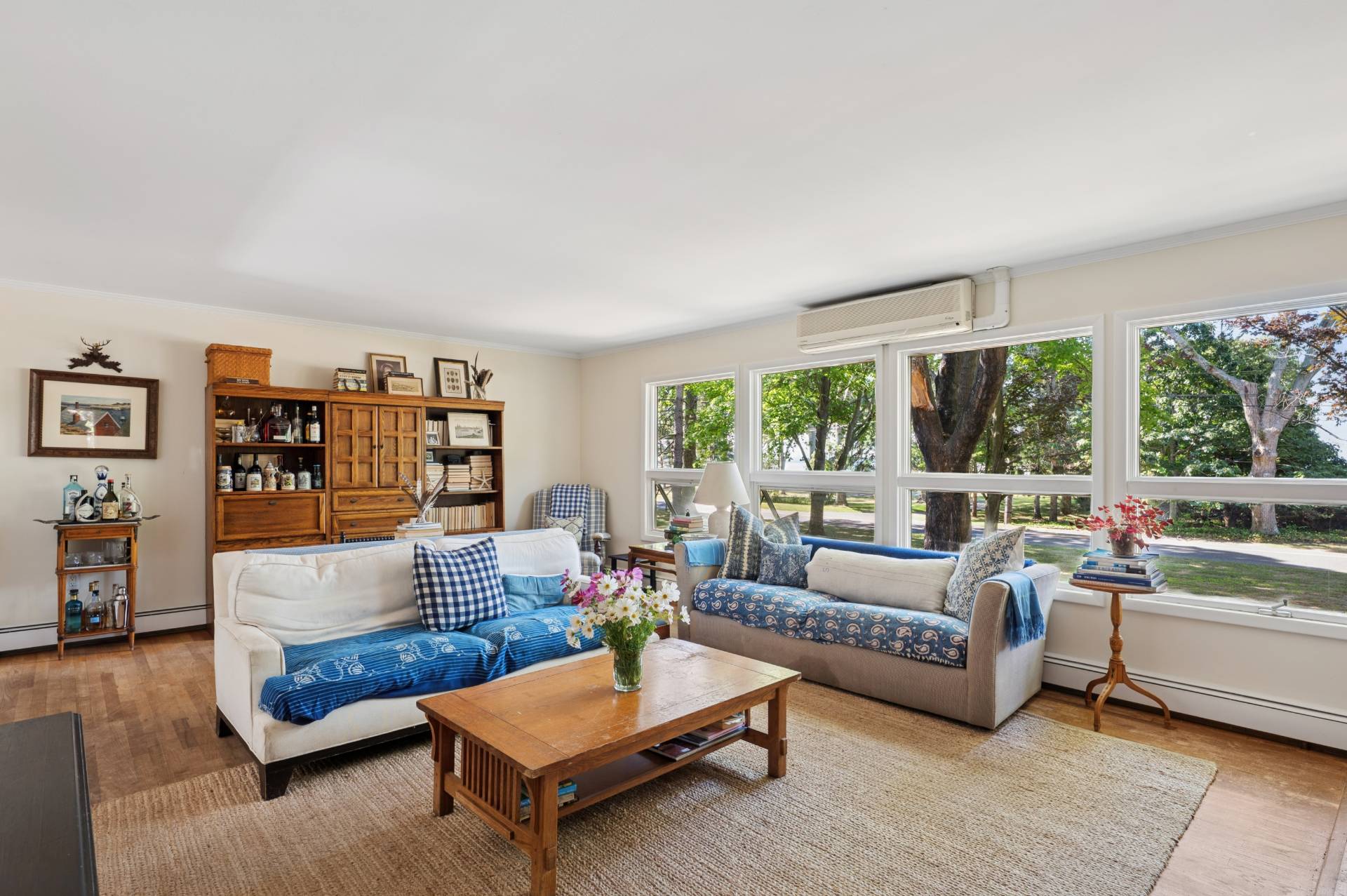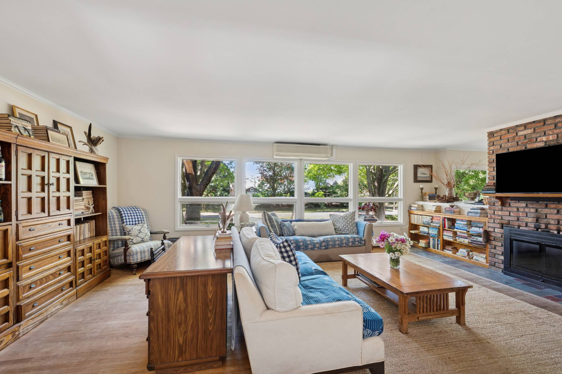 Enjoy southwest summer breezes at this charming Silver Beach raised ranch. Easy access to Silver Beach association beaches and a short distance to Shell Beach, one of Shelter Island's most loved beaches. The first floor consists of a primary suite and second bedroom and full bath, kitchen, dining and living room with fireplace. The lower level offers a private quest area with one bedroom one bath and den with fireplace and an attached 2 car garage. The shy acre has many mature maple trees and a private backyard. This is a perfect year round residence or summer retreat.