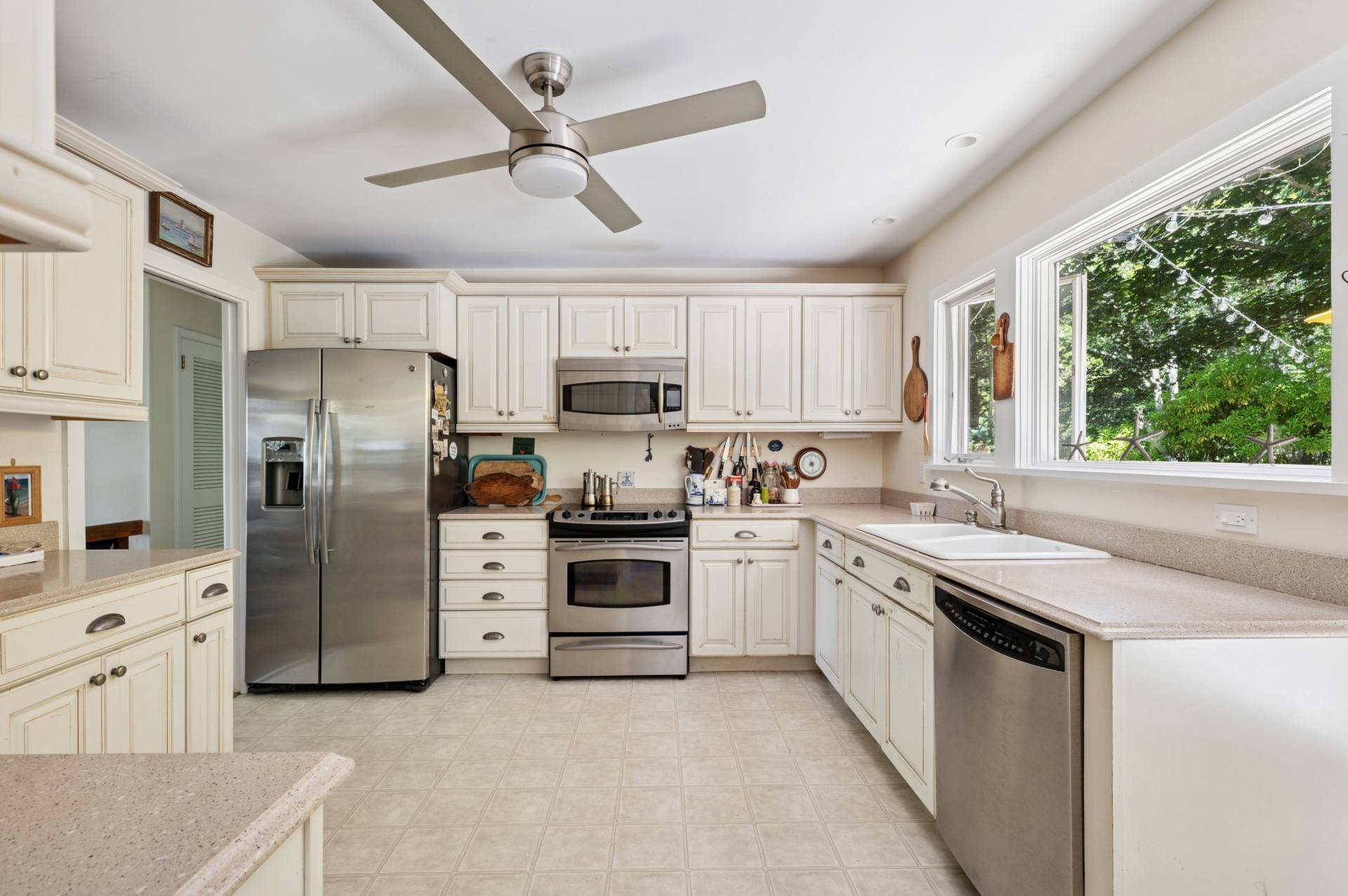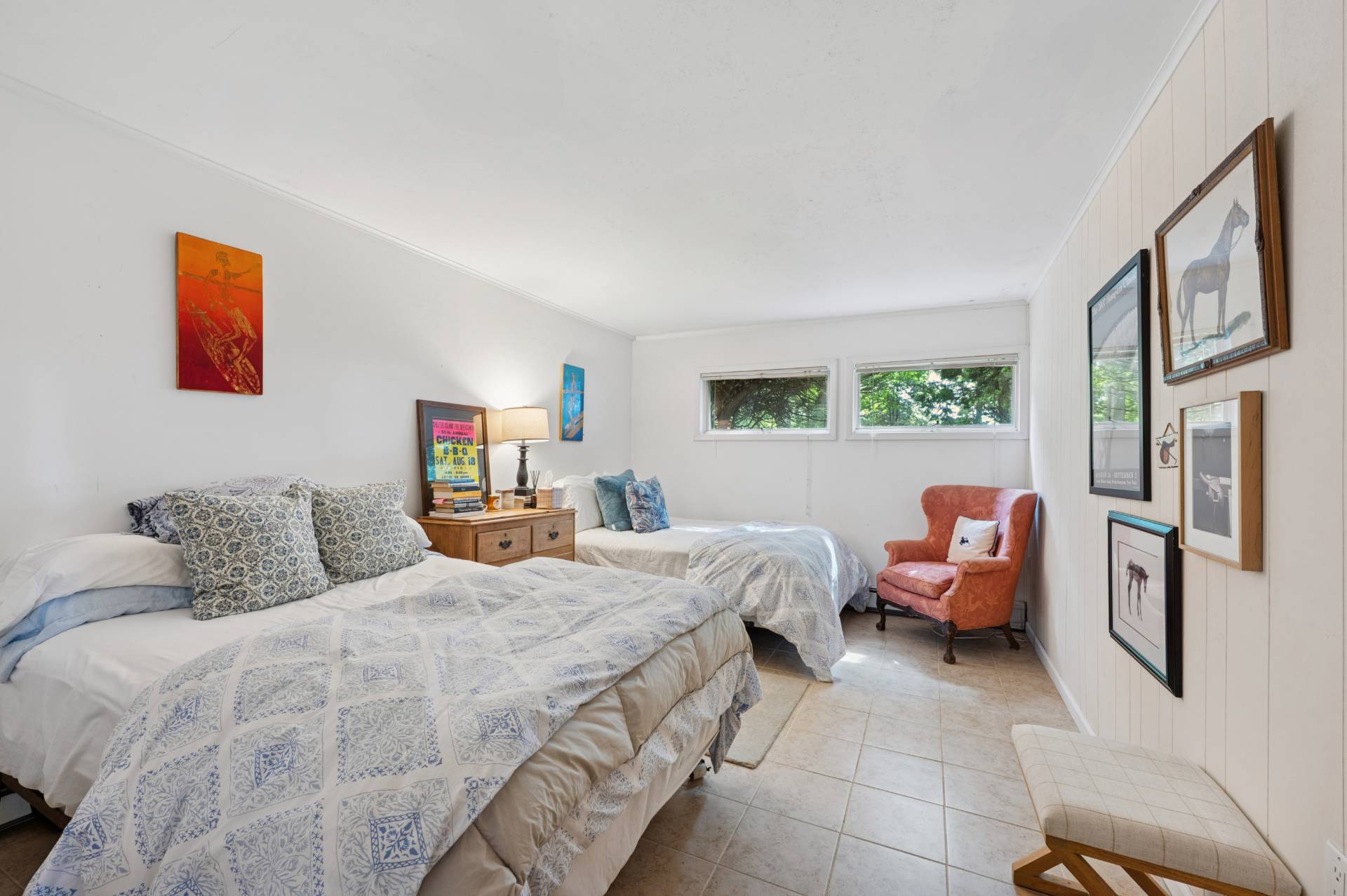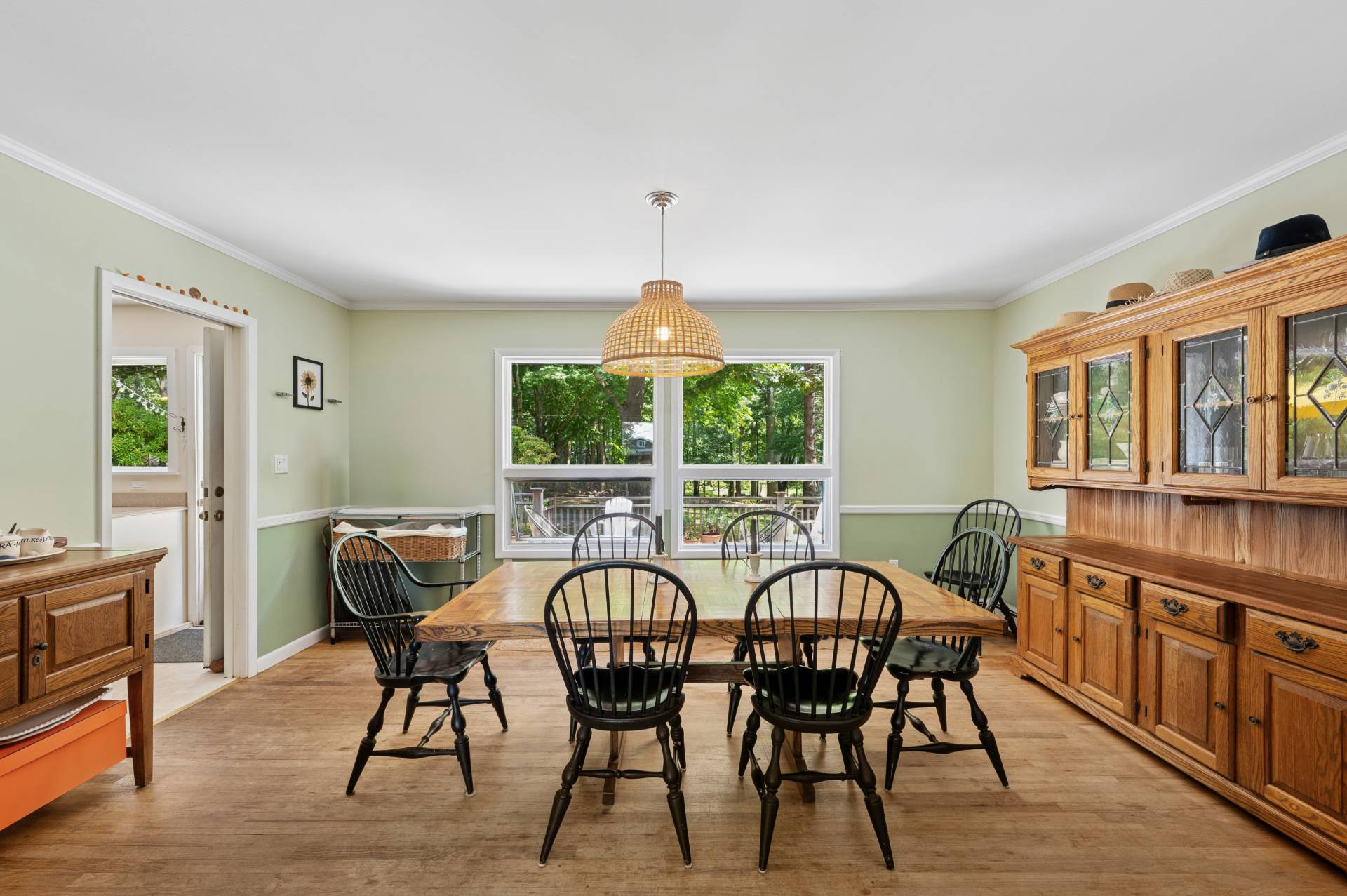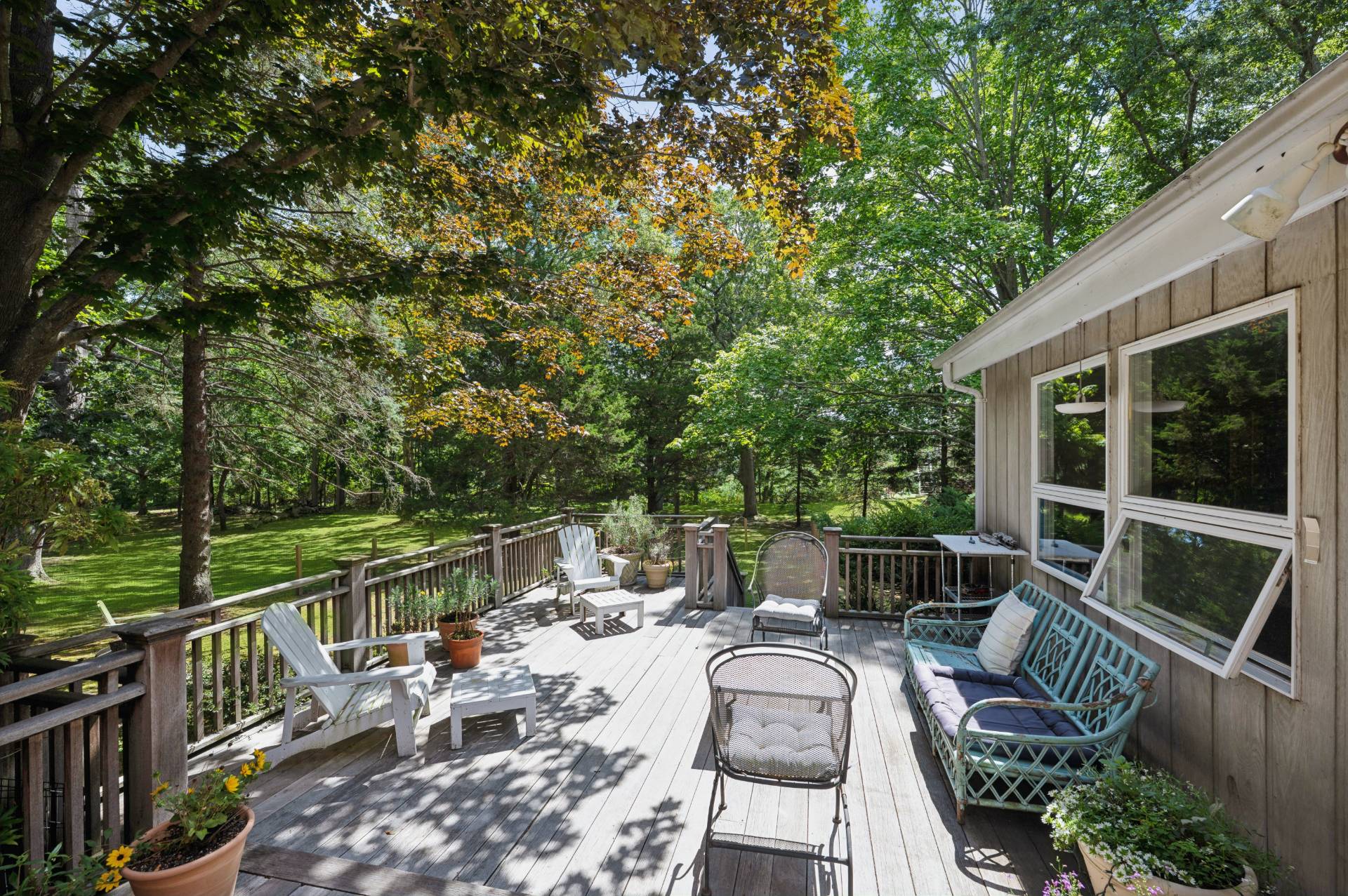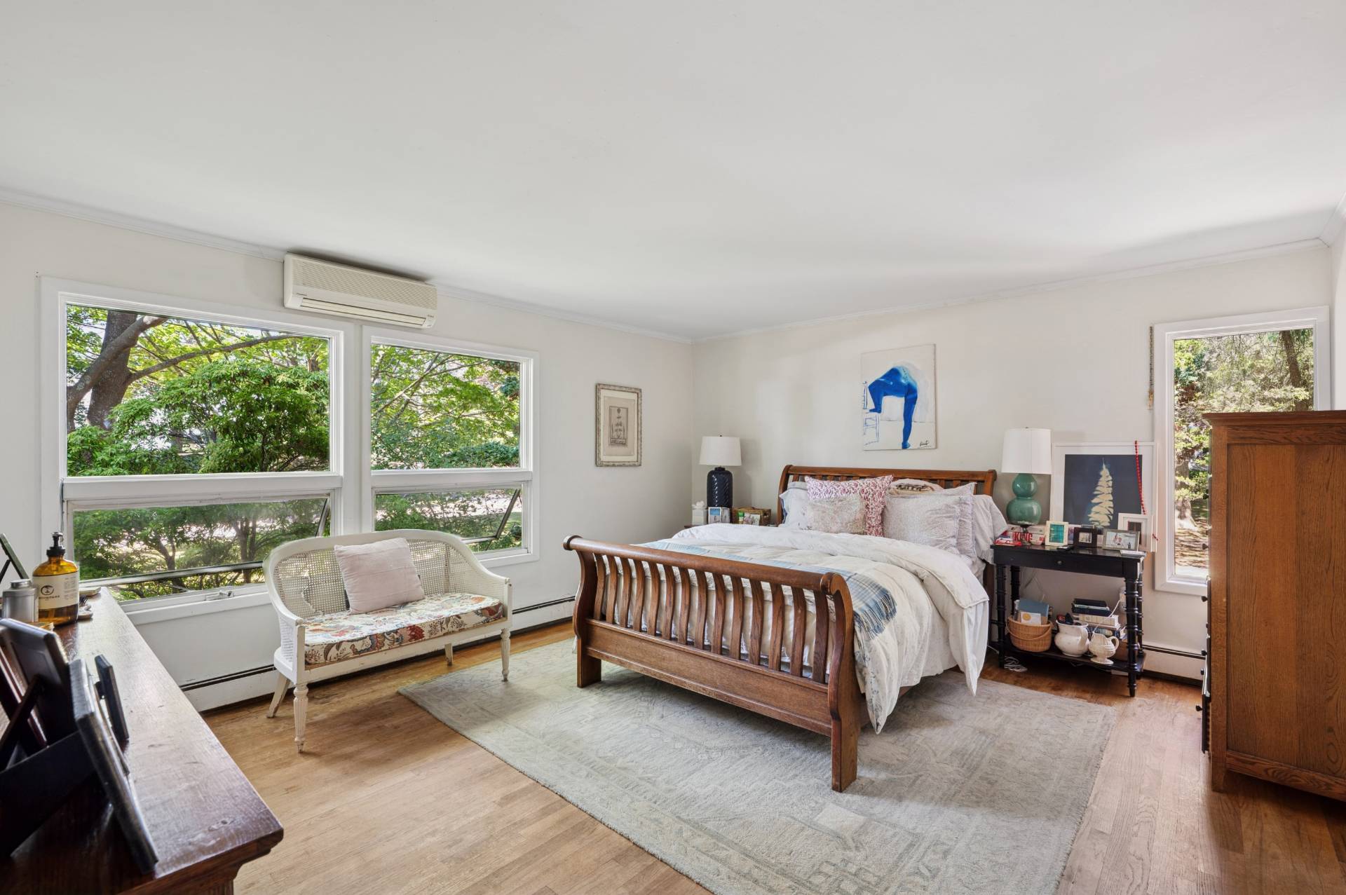 Enjoy southwest summer breezes at this charming Silver Beach raised ranch. Easy access to Silver Beach association beaches and a short distance to Shell Beach, one of Shelter Island's most loved beaches. The first floor consists of a primary suite and second bedroom and full bath, kitchen, dining and living room with fireplace. The lower level offers a private quest area with one bedroom one bath and den with fireplace and an attached 2 car garage. The shy acre has many mature maple trees and a private backyard. This is a perfect year round residence or summer retreat.