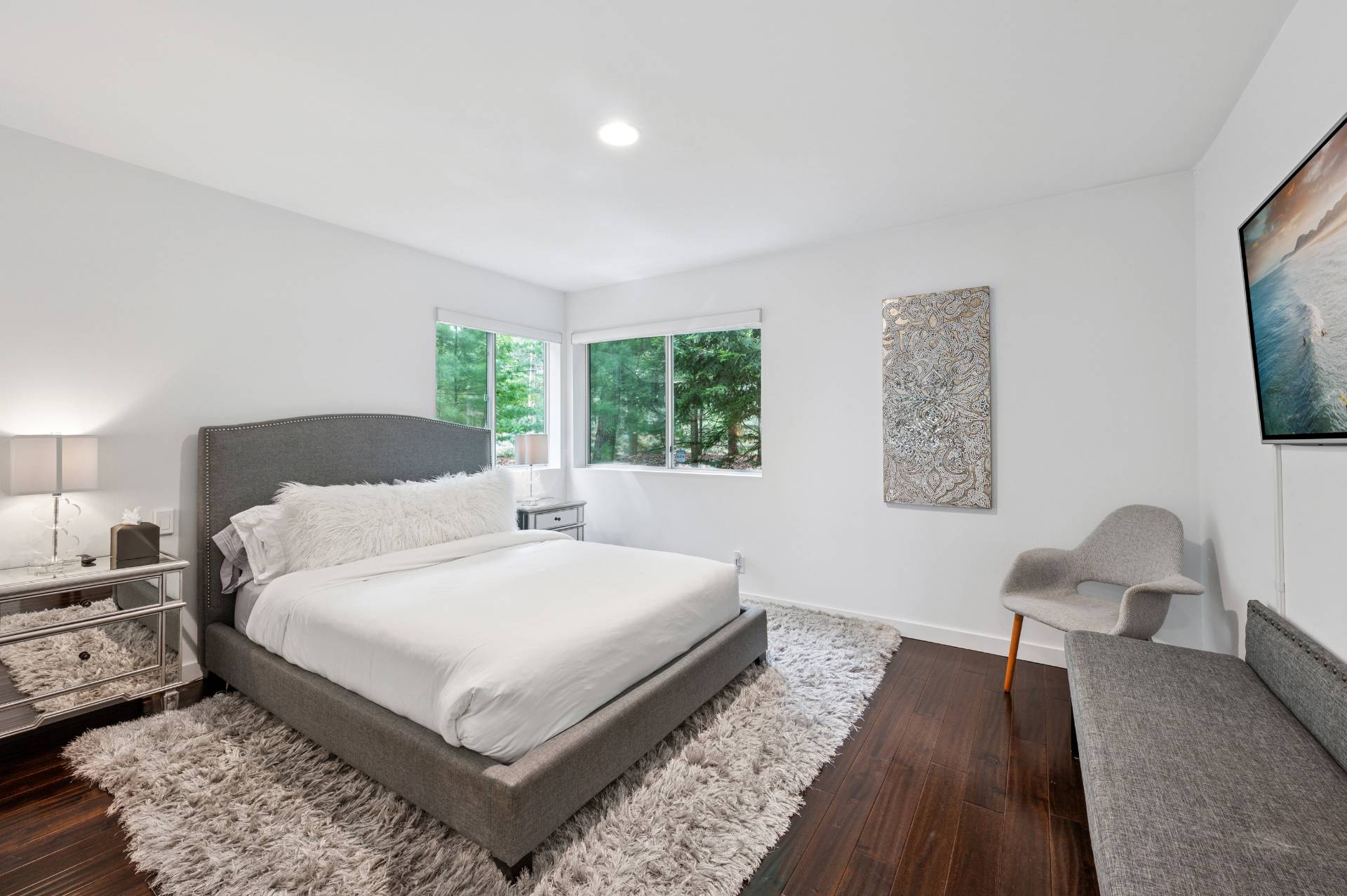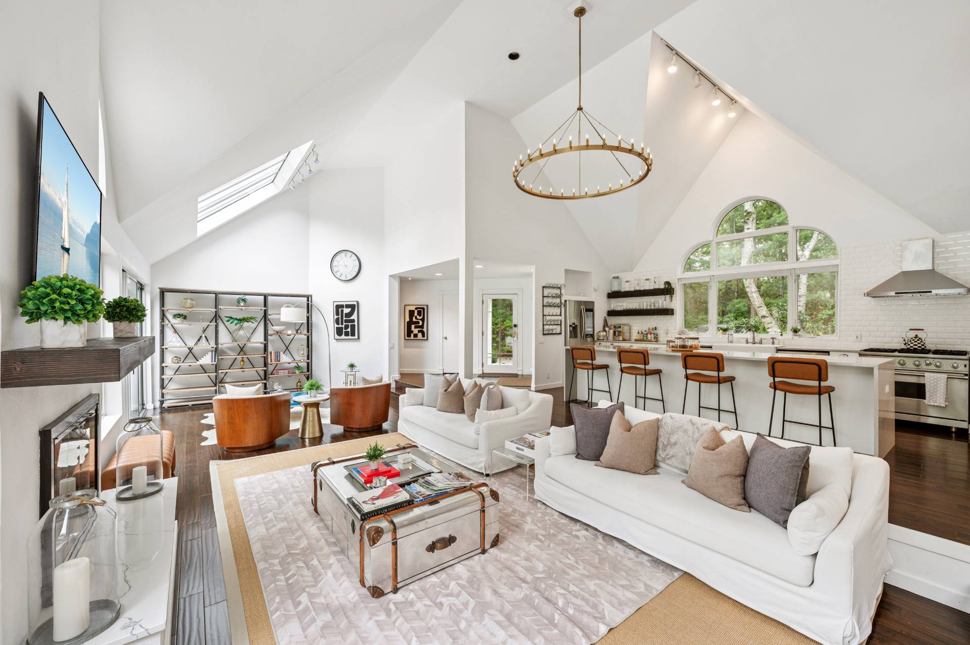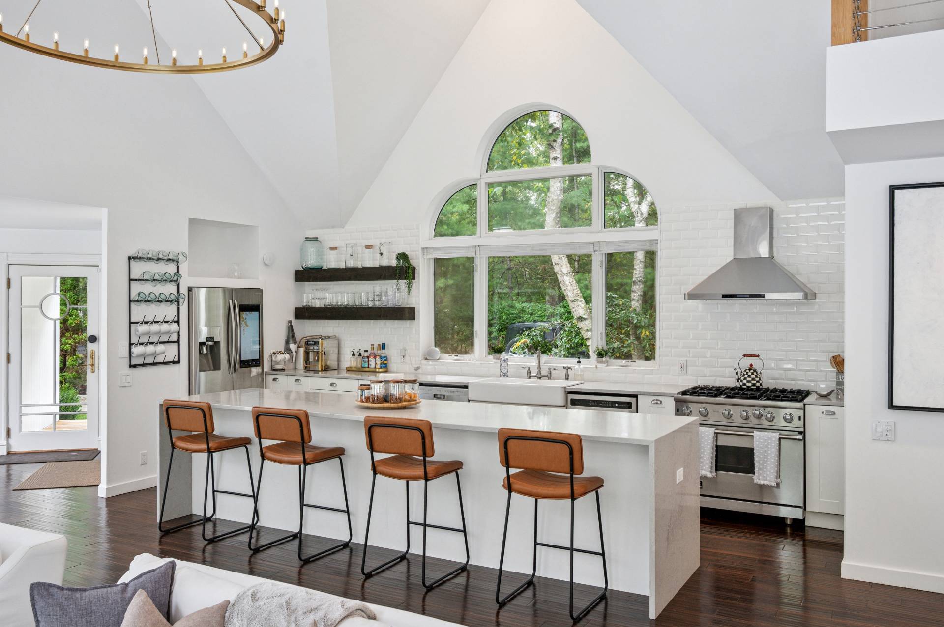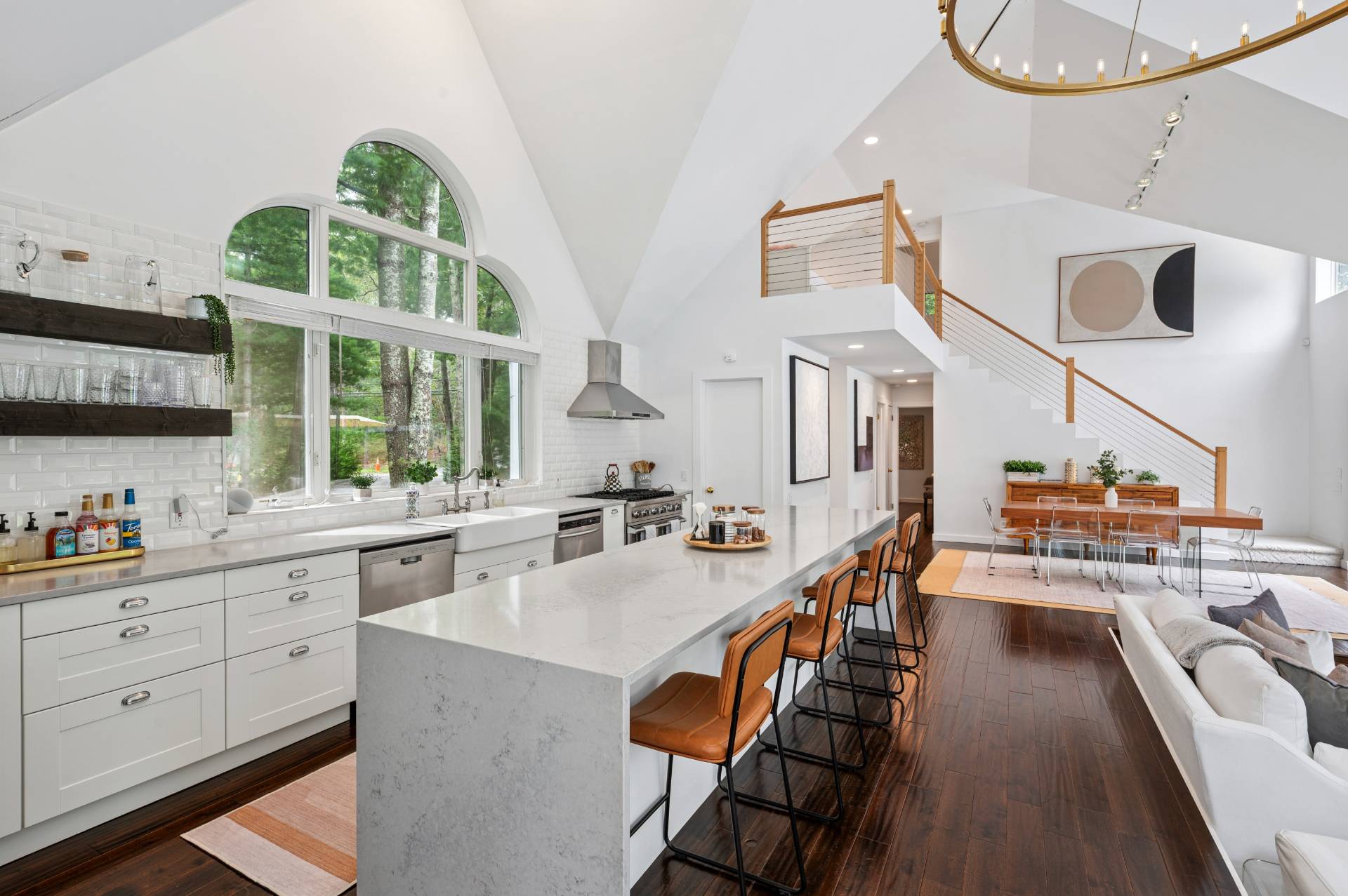Set behind a circular drive on over 1.5 acres just moments from Three Mile Harbor, this contemporary retreat is designed for relaxed Hamptons living. The airy, open layout connects the living room, great room, and kitchen, with walls of glass and sliders bringing in natural light all day long. The first-floor primary suite is its own private sanctuary, complete with a spacious bath and direct access to a secluded deck. Two additional bedrooms on the main level make entertaining a breeze, while upstairs, a junior suite with a sitting area offers a perfect getaway for guests. Step outside to a sweeping entertaining deck and heated pool, surrounded by trees for privacy and quiet-an ideal setting for summer weekends and year-round enjoyment. A full-height basement offers potential for finishing, while the detached two-car garage provides storage for all your water or land toys.