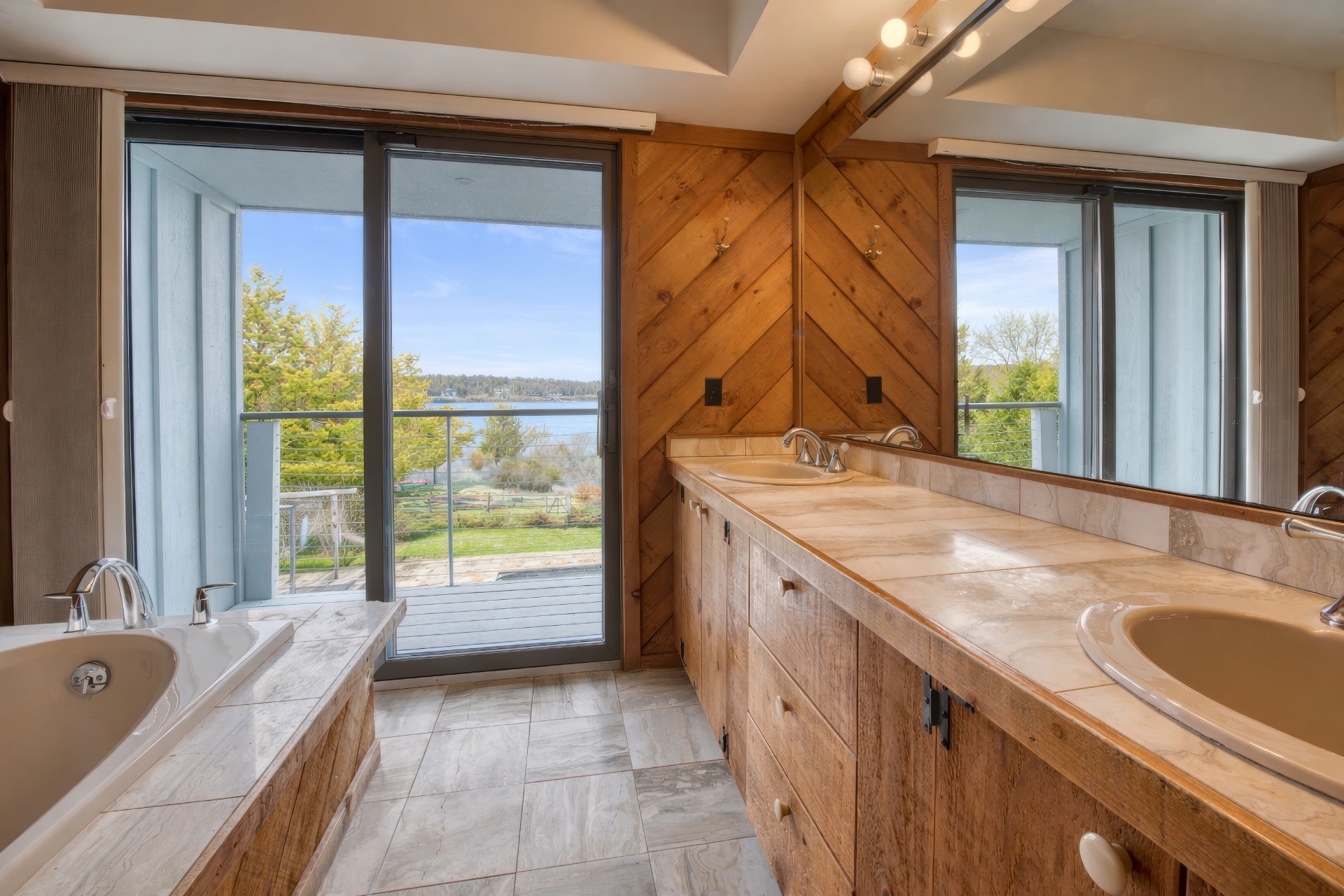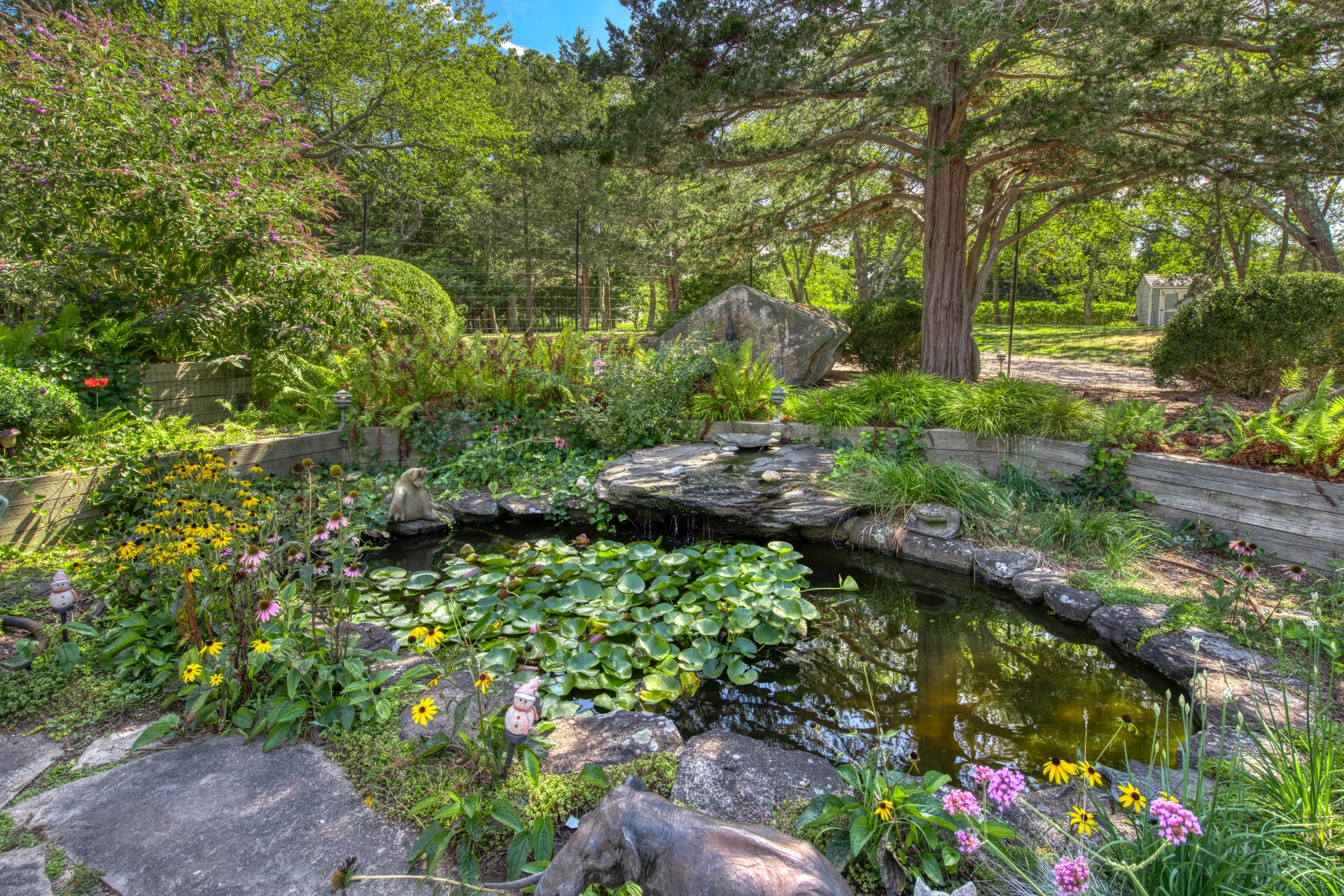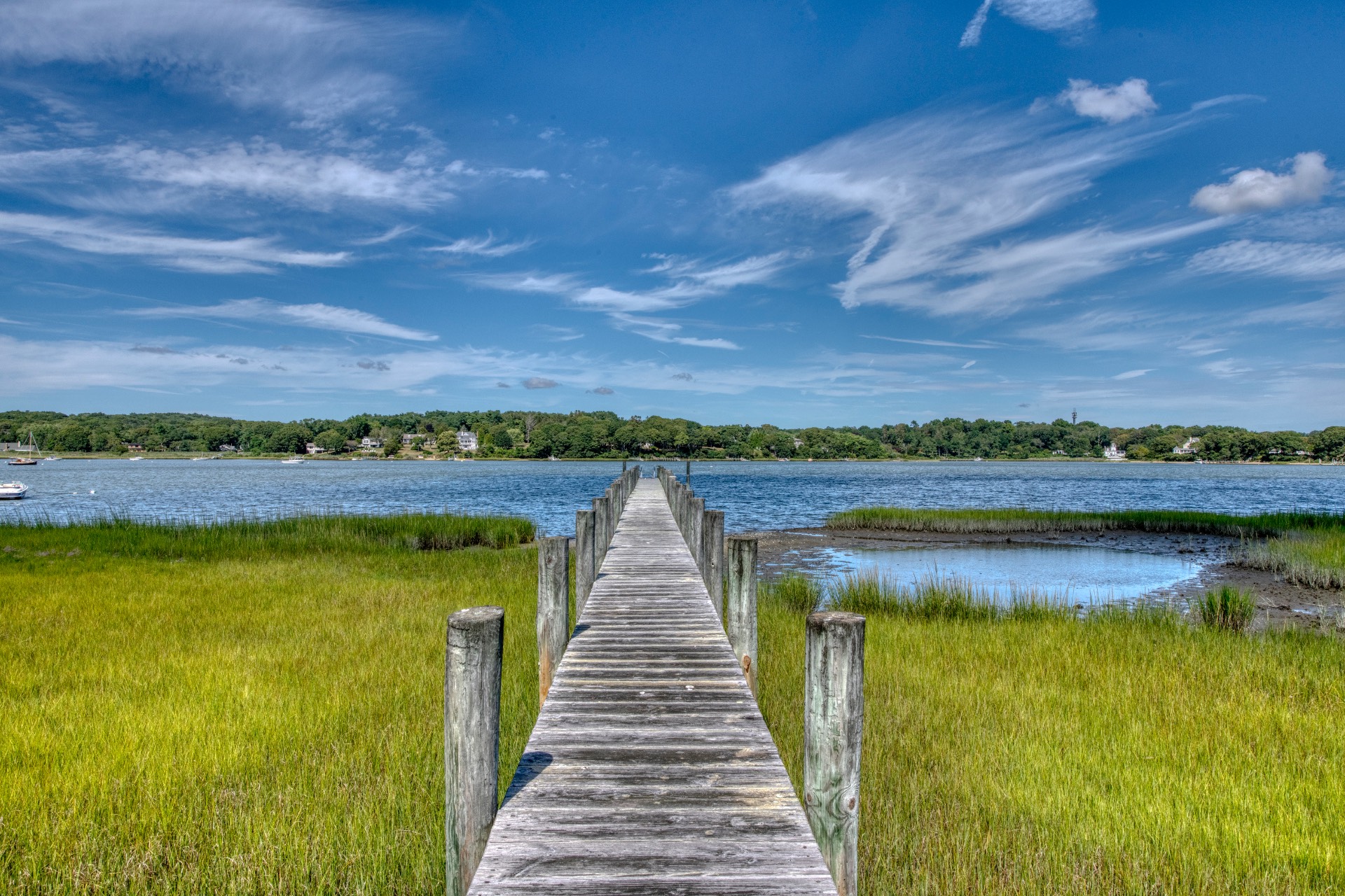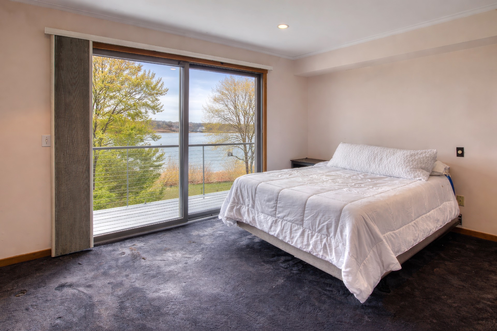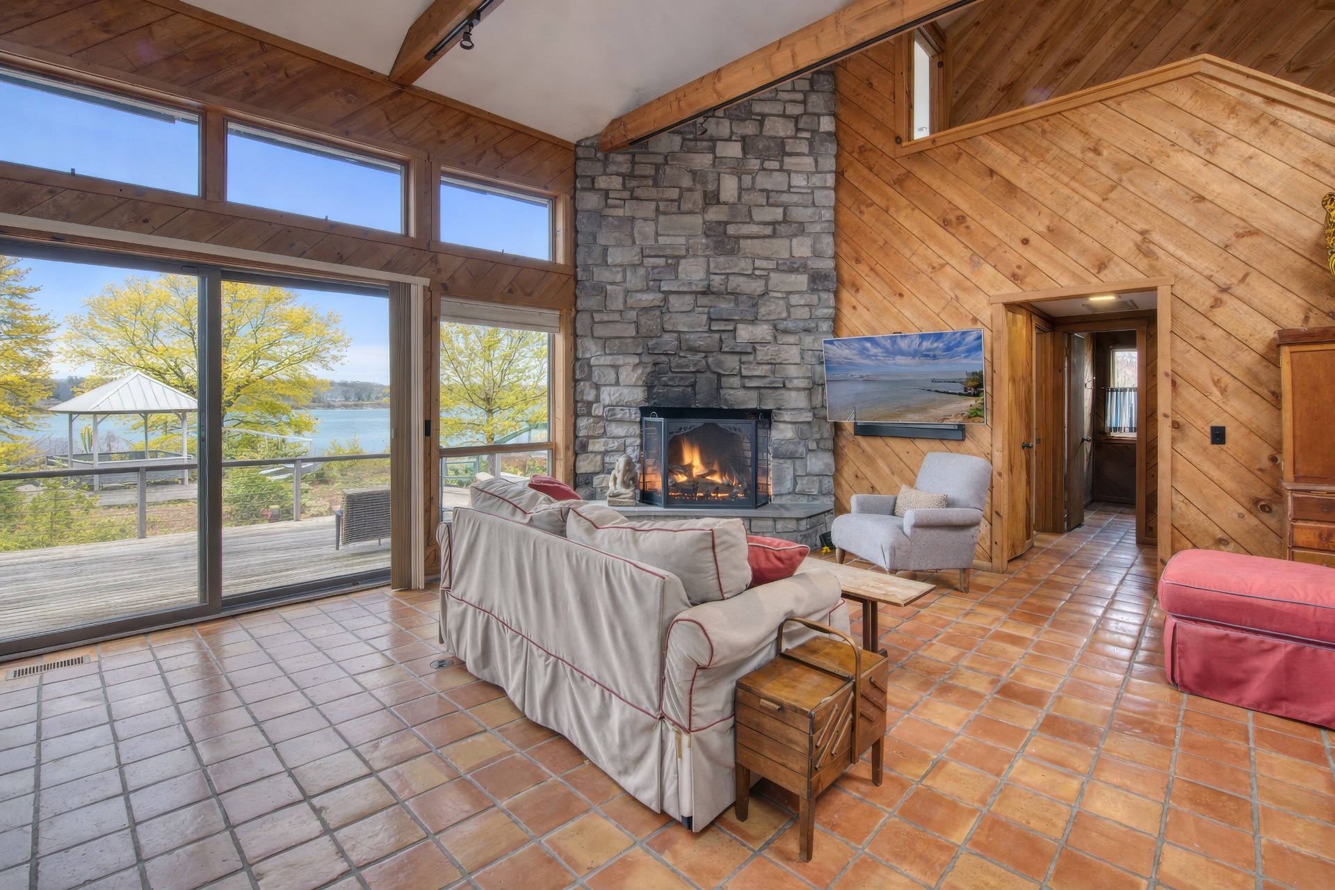 Stunning waterfront views overlooking West Neck Bay in the Westmoreland area of Shelter Island. This 4 bedroom, 3.5 bath Contemporary on 1.4 beautiful acres has an open plan living and dining area with stone fireplace, beamed and vaulted ceilings with expansive glass across the waterside overlooking a large deck, heated gunite pool, patio with outdoor kitchen, gazebo and dock. The main floor also has a kitchen with waterview, convenient pantry, 1/2 bath, art studio overlooking a charmingly landscaped water lily pond with specimen plants and flowers plus a two car garage on the west side of the common areas and full bath with two bedrooms, one of which has water views and deck, on the east side. The second floor is accessed by two staircases leading to a large primary ensuite bedroom with private bath, jaccuzzi tub, separate shower, office and balcony deck on one side and a private guest suite with bath and balcony deck on the other. The views from this floor are spectacular. The large finished basement has access to a stone patio leading out to the waterfront and has ample storage and utility rooms. The waterside is an amazing area for entertaining and relaxation with beautiful heated pool, patio, deck, reading, hammock and grilling areas. The property is lovingly landscaped and accessed by a private drive with large parking area. Fully heated with central air conditioning and extensive solar panelling, this home makes a wonderful vacation or year round living experience surrounded by nature, open skies and sea.