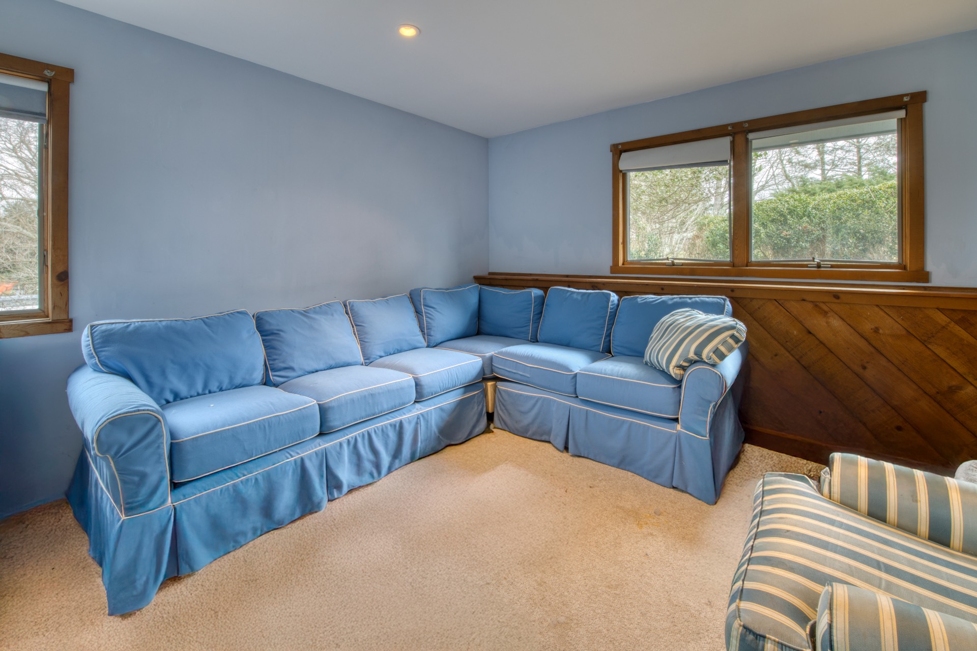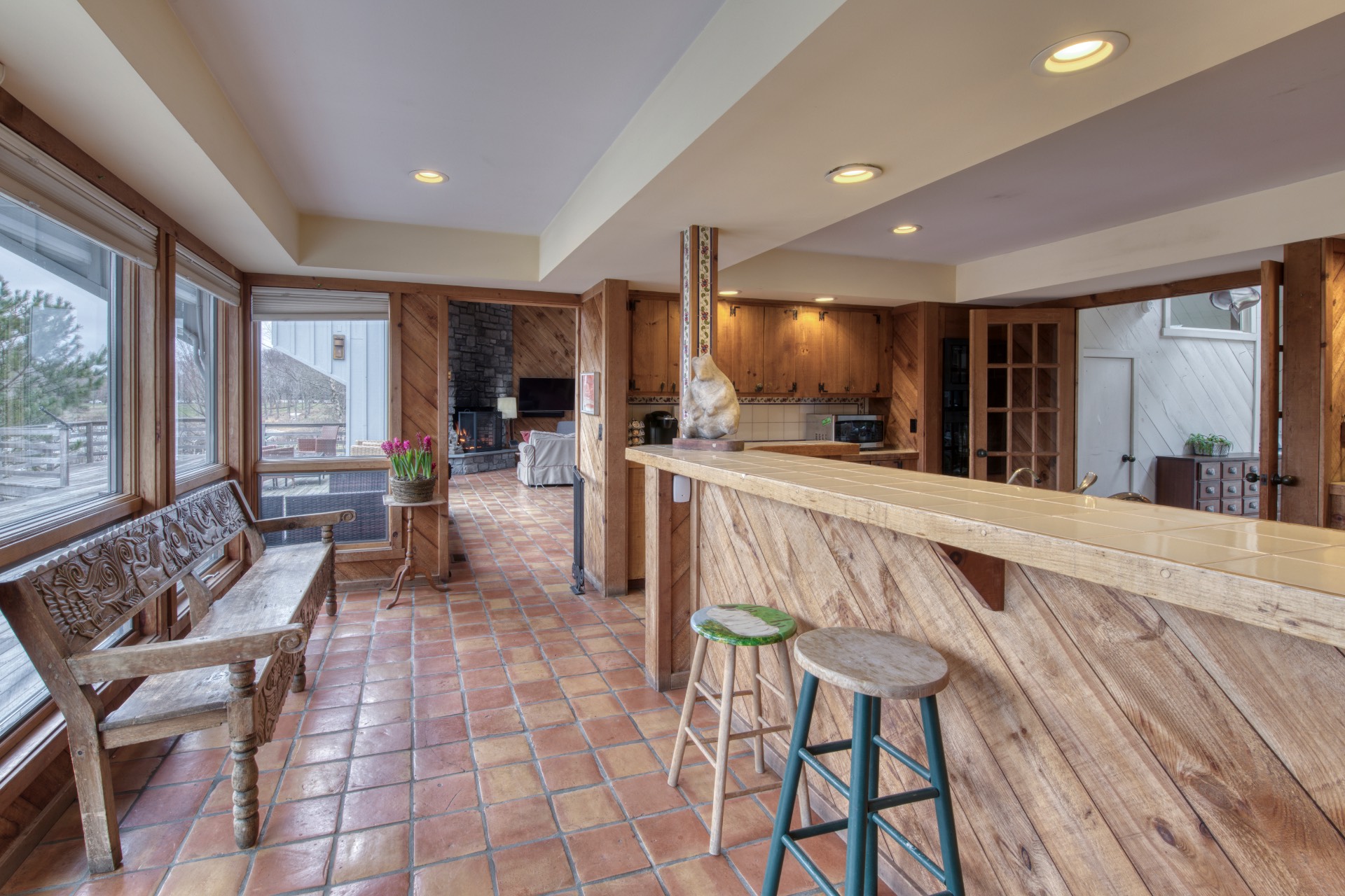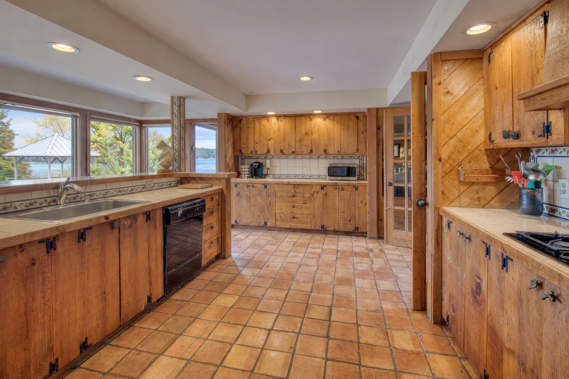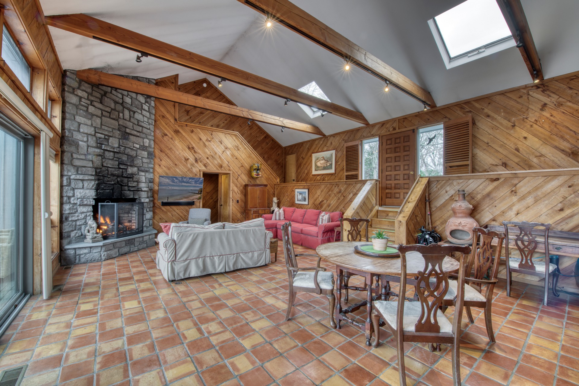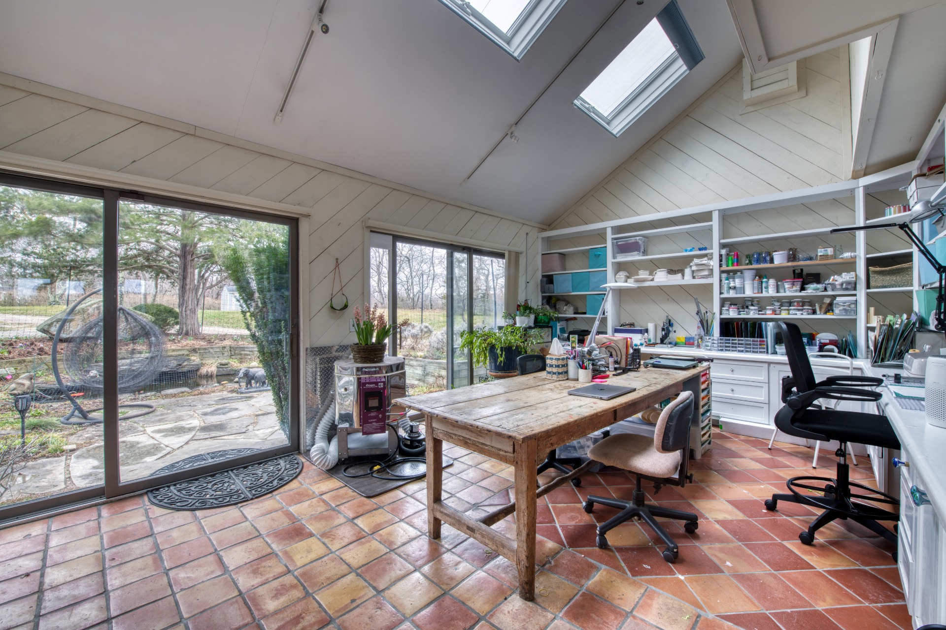 Stunning waterfront views overlooking West Neck Bay in the Westmoreland area of Shelter Island. This 4 bedroom, 3.5 bath Contemporary on 1.4 beautiful acres has an open plan living and dining area with stone fireplace, beamed and vaulted ceilings with expansive glass across the waterside overlooking a large deck, heated gunite pool, patio with outdoor kitchen, gazebo and dock. The main floor also has a kitchen with waterview, convenient pantry, 1/2 bath, art studio overlooking a charmingly landscaped water lily pond with specimen plants and flowers plus a two car garage on the west side of the common areas and full bath with two bedrooms, one of which has water views and deck, on the east side. The second floor is accessed by two staircases leading to a large primary ensuite bedroom with private bath, jaccuzzi tub, separate shower, office and balcony deck on one side and a private guest suite with bath and balcony deck on the other. The views from this floor are spectacular. The large finished basement has access to a stone patio leading out to the waterfront and has ample storage and utility rooms. The waterside is an amazing area for entertaining and relaxation with beautiful heated pool, patio, deck, reading, hammock and grilling areas. The property is lovingly landscaped and accessed by a private drive with large parking area. Fully heated with central air conditioning and extensive solar panelling, this home makes a wonderful vacation or year round living experience surrounded by nature, open skies and sea.