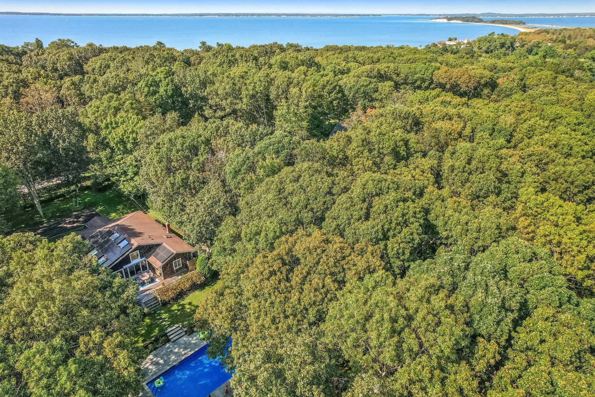 New Listing Alert!! Imagine summers spent on the water and evenings entertaining on a sprawling patio. This stunning new Sag Harbor listing offers a lifestyle of coastal charm and modern convenience. The open floor plan creates a bright and airy atmosphere, while the four well-appointed bedrooms provide comfort and privacy for everyone. Discover culinary bliss in the recently renovated kitchen. New countertops and a stylish backsplash complement the top-of-the-line appliances. The generous island provides a central gathering spot, ensuring every meal and celebration is a special occasion. A formal living and dining room provide plenty of space for guests to relax and enjoy all this home offers. Beyond the main living space, a generous outdoor area offers the perfect backdrop for creating memories with friends and family. The large patio, with outdoor shower, outdoor tv, wicker furniture and large dining table provides the ultimate entertaining oasis. Beyond sits the fabulous 20ft by 40ft pool, surrounded by lush and mature landscaping. This fabulous retreat also features state-of-the-art solar panels for energy efficiency and a convenient EV charging station, making it a home that's as intelligent as it is beautiful. A one-car garage and gym complete the picture. Sited between Sag Harbor and Southampton, in the desired location of Sunset Shores, which offers bay access to Peconic Bay, the home's location is perfect for the ultimate experience of either village. And if this was not all enough, 24 Shadyrest is being sold with all furnishings included, making it the ultimate turn key property. With a proven rental history, this property has so much to offer. This is more than a home, its a sustainable sanctuary, a home that's as intelligent as it is beautiful.