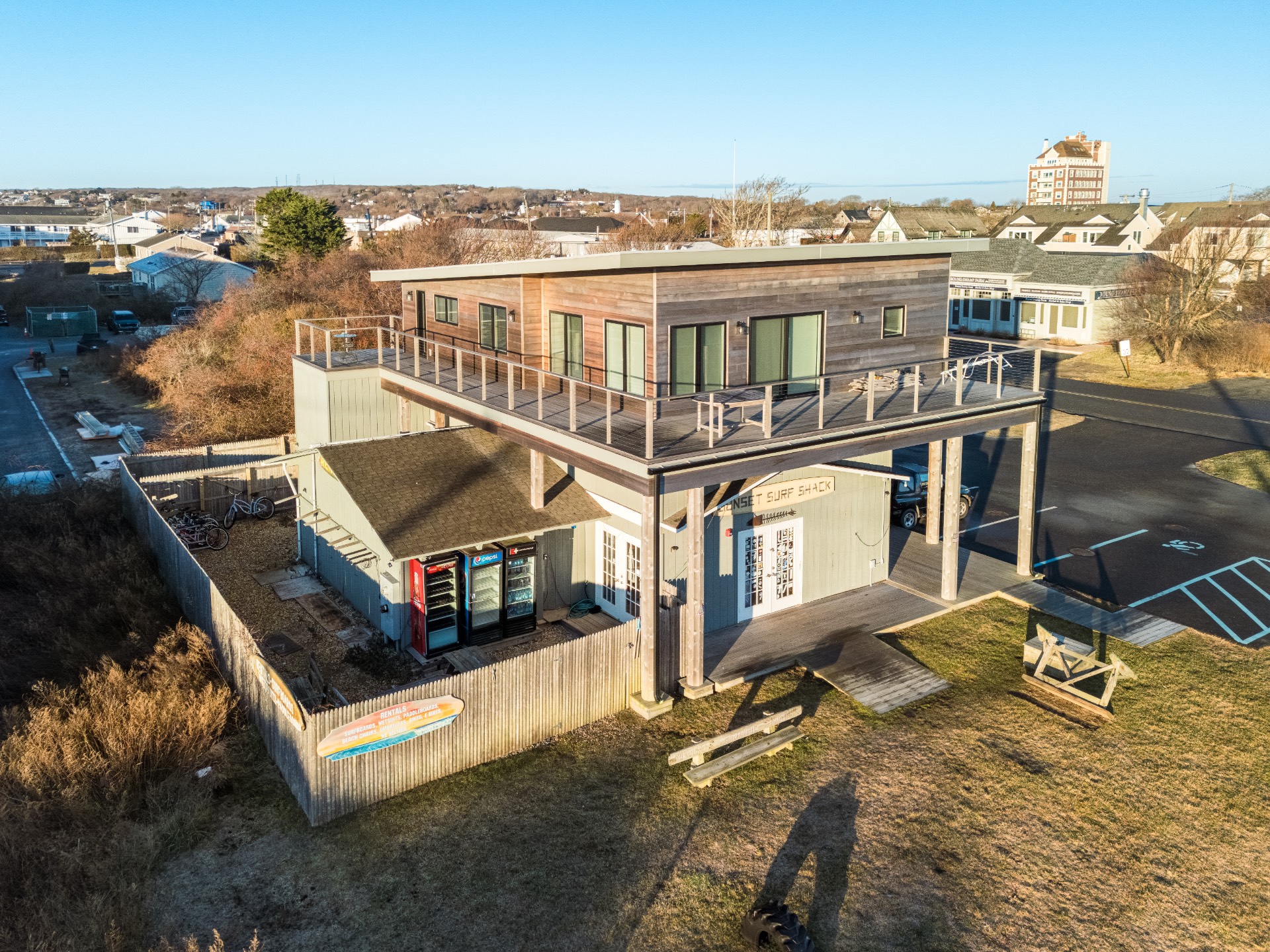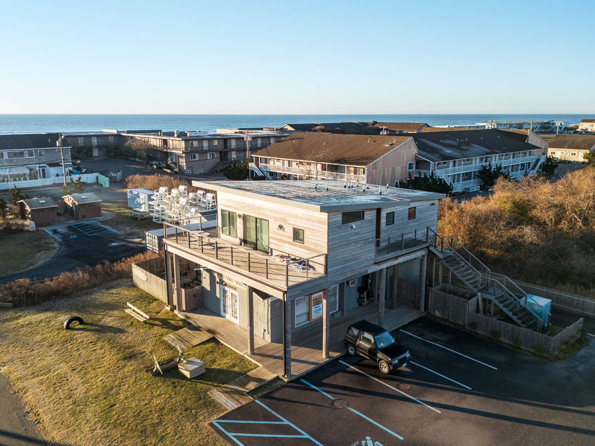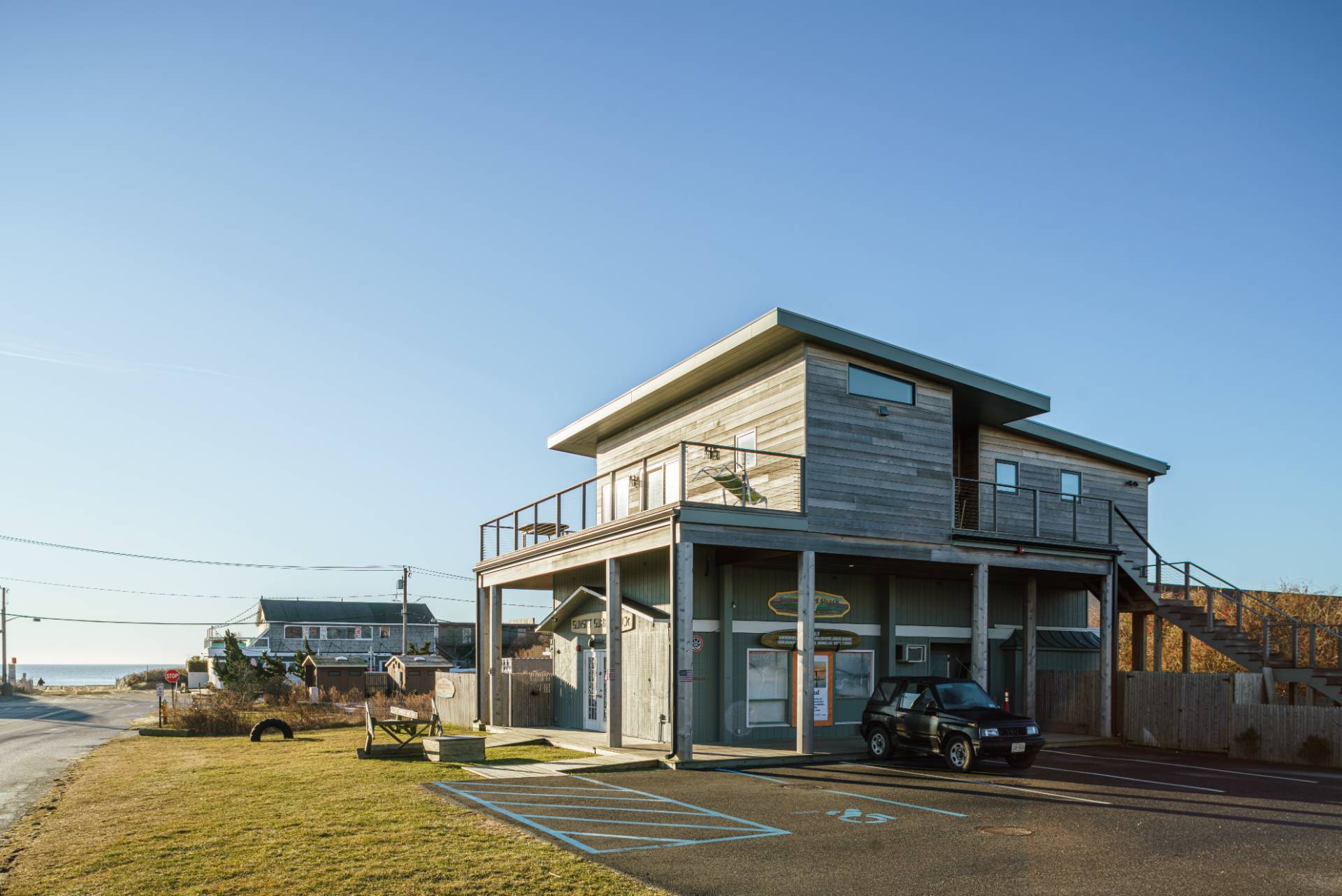 An exceptional opportunity to own a versatile mixed-use property in the heart of Montauk, just 200 steps from the ocean with breathtaking sunrise and sunset views. Situated on 0.19 acres, this 2,723 SF, two-story building offers the rare combination of commercial potential and modern residential living - ideal for investors, entrepreneurs, or end-users seeking both lifestyle and income in one of the East End's most coveted locations. Originally built in 1963, the property underwent a comprehensive renovation in 2023, blending updated finishes with solid construction. A newly constructed apartment, completed in 2024, adds significant value and flexibility - perfect for owner occupancy, staff housing, or strong rental income potential. The property features three full baths and thoughtfully designed space across two levels, allowing for a variety of commercial uses while maintaining comfortable, contemporary residential accommodations. With the Atlantic Ocean just steps away and Montauk's vibrant shops, restaurants, and beaches nearby, this property offers the ultimate live/work coastal experience. Opportunities that combine location, flexibility, recent renovations, and ocean proximity are increasingly rare. Whether you envision retail, office, gallery, hospitality, or a dynamic live/work concept, this property delivers exceptional potential in one of Montauk's most sought-after settings.