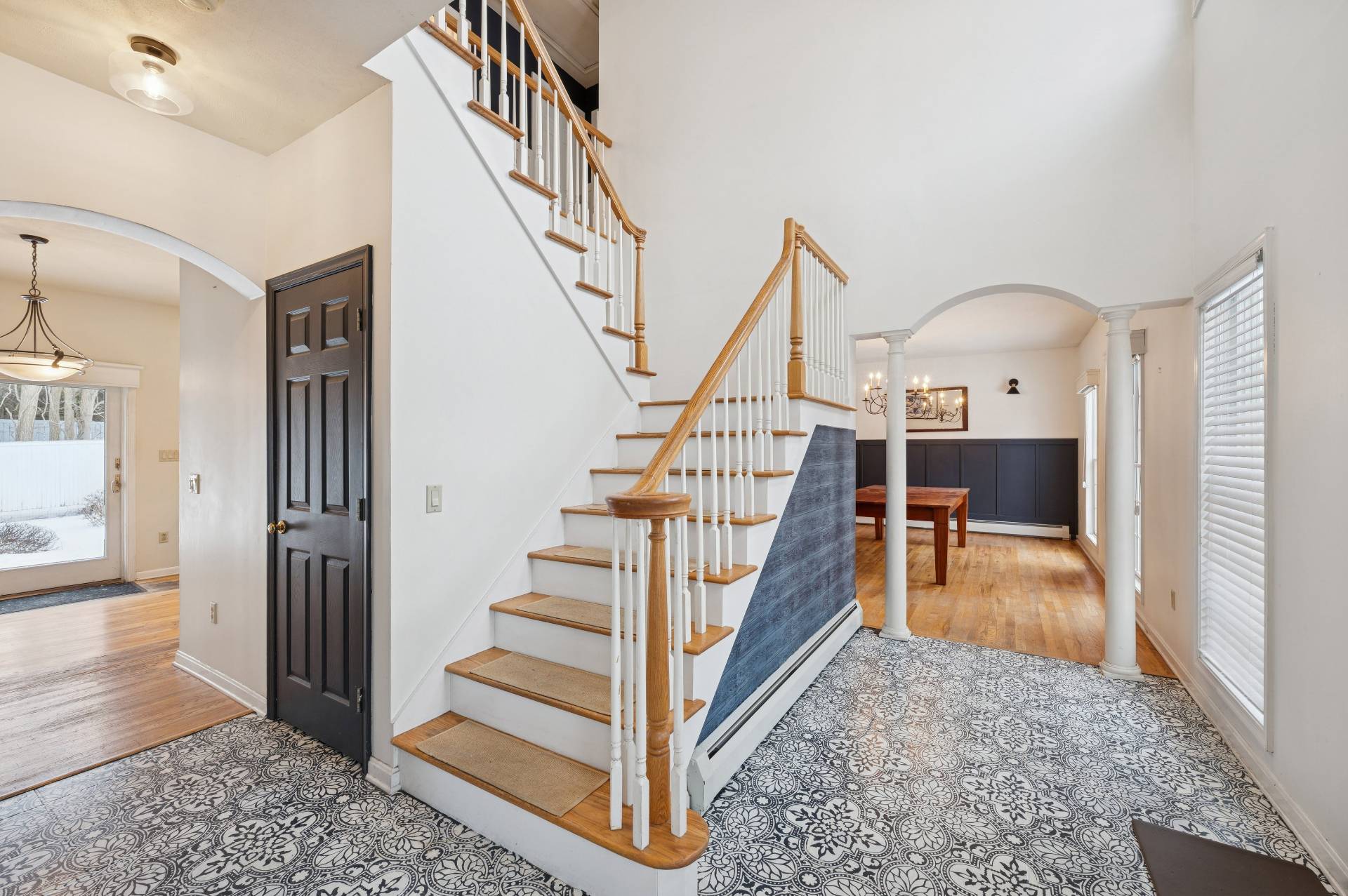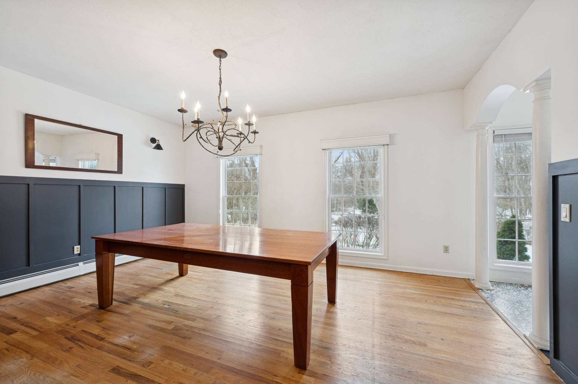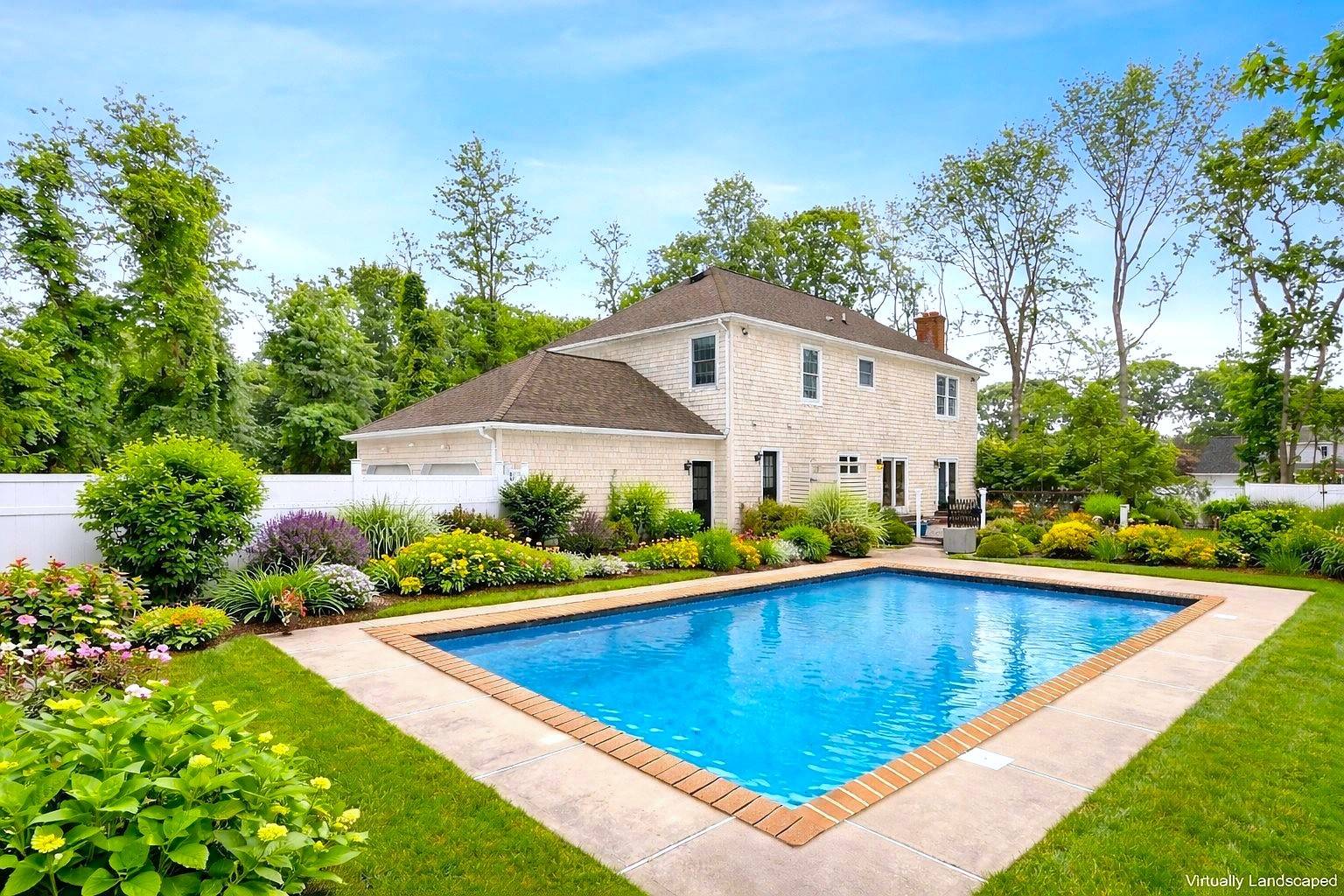 Set on 1.75 acres, this expansive four-bedroom residence offers privacy, generous interiors, and effortless Hamptons living just moments from Sag Harbor Village. Sun-filled open spaces and refined proportions create a home designed for both comfort and entertaining, while the backyard retreat with pool invites relaxed summer living. A dramatic double-height entry introduces the home and opens to a gracious living room that flows seamlessly into the great room with fireplace and a spacious eat-in kitchen. The formal dining room accommodates large gatherings with ease, ideal for memorable dinners with family and friends. The first floor includes a dedicated laundry room, and direct access to the attached two-car garage. Upstairs, the primary suite offers impressive scale and a substantial walk-in closet. Three additional guest bedrooms provide comfortable accommodations for visitors. The full basement adds nearly 1,500 square feet of additional space, ready to transform into a media room, fitness studio, or custom retreat tailored to your needs. Outdoors, a patio designed for al fresco dining overlooks the pool and gorgeous, lush landscaping, complemented by an outdoor shower. The private flag lot allows room for a substantial accessory structure, presenting an exceptional opportunity for expansion or future development. Just half a mile to Sag Harbor Village, this property places restaurants, boutiques, theater and marinas in easy reach, plus you'll be in close proximity to Long Beach with it's unrivaled sunsets, this elegant property places you at the center of great Hamptons living.