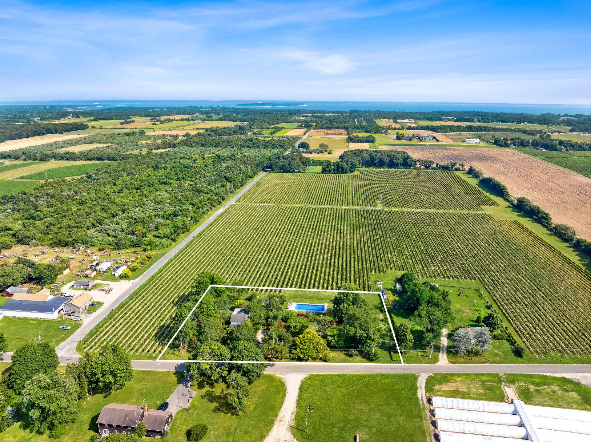 Romance, Elegance and Timeless beauty over 38 acres on bucolic Oregon Road, you couldn't ask for anything more! 36 acres of DRS land which includes 30 planted acres of grape vines, deer fencing and bird netting, irrigation in place for an additional 2-3 acres of planting and a potential wine tasting area. The updated vintage farmhouse rests on 2 acres of DRI land and features 3 bedrooms, 2 bathrooms, sun drenched open floor plan, eat-in-kitchen, dining area, sitting area with reading nook, living room with a fireplace. Step outside and enjoy lush landscape surrounding the pool, outdoor shower and vineyard views! Surrounded by award winning North Fork wineries, restaurants, farm stands, boating & great shopping.