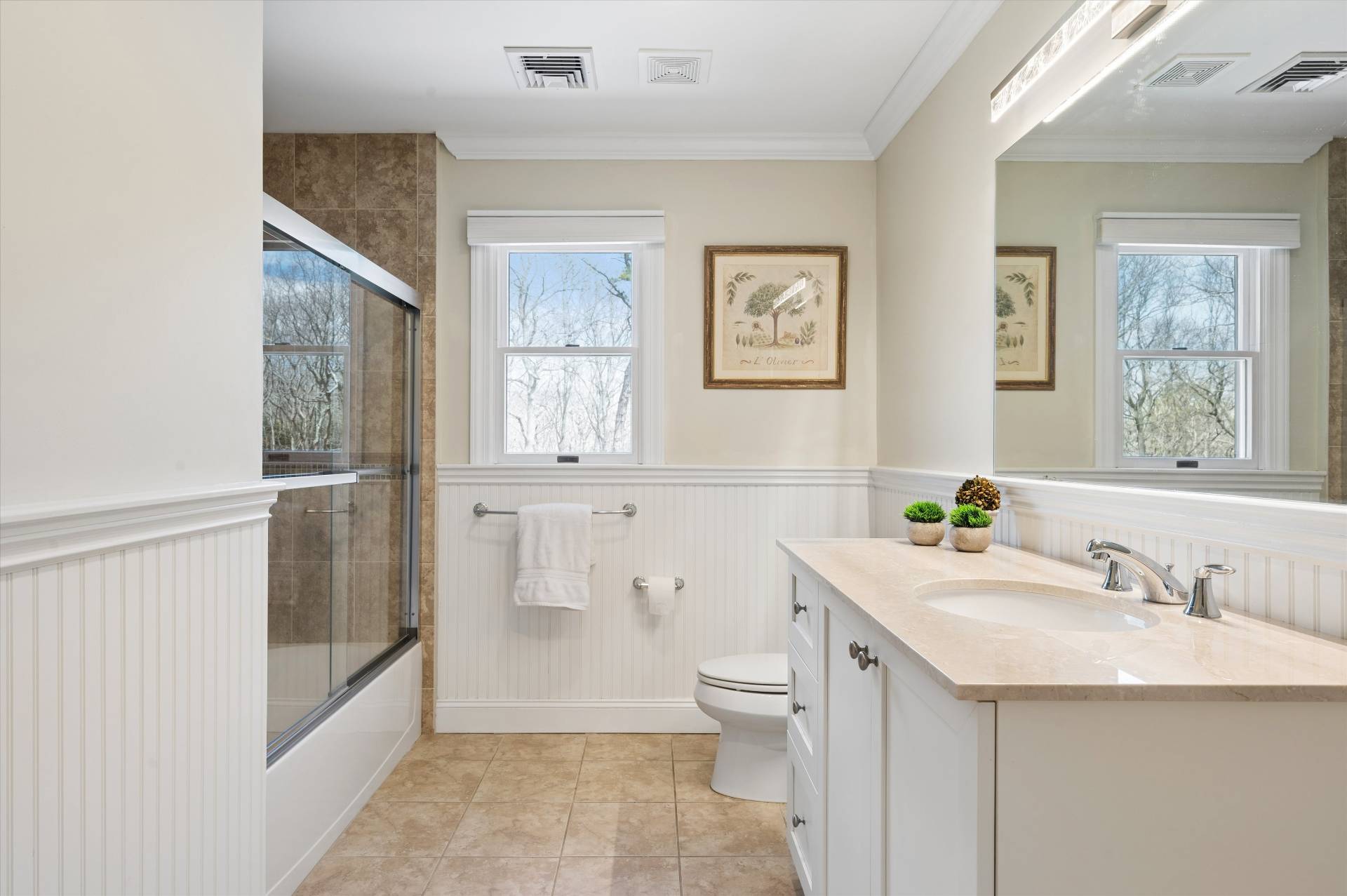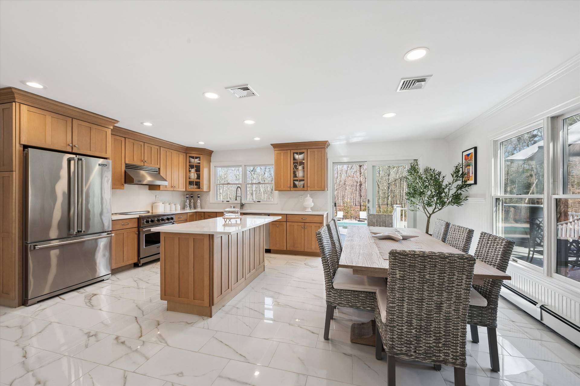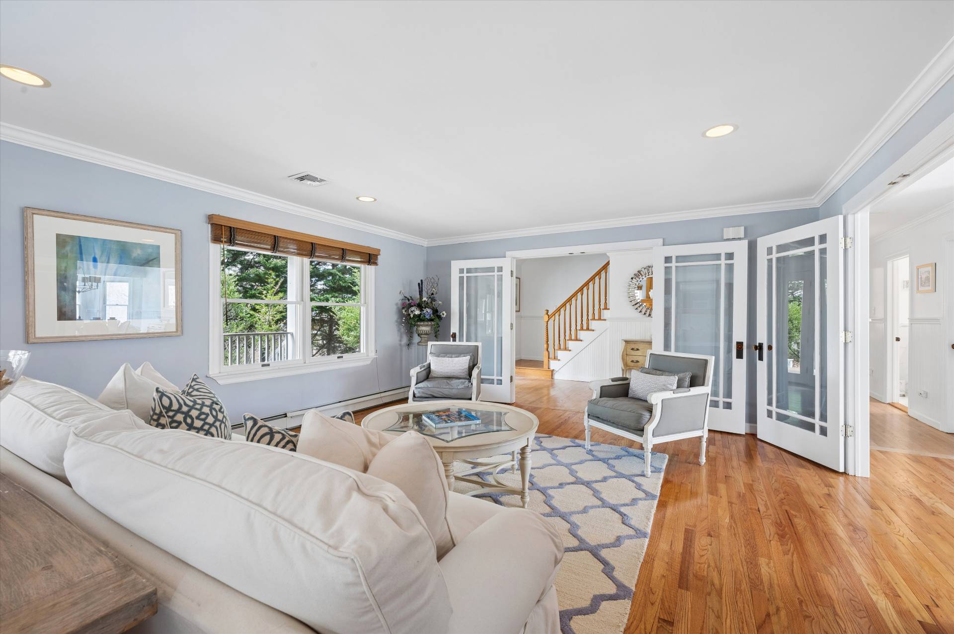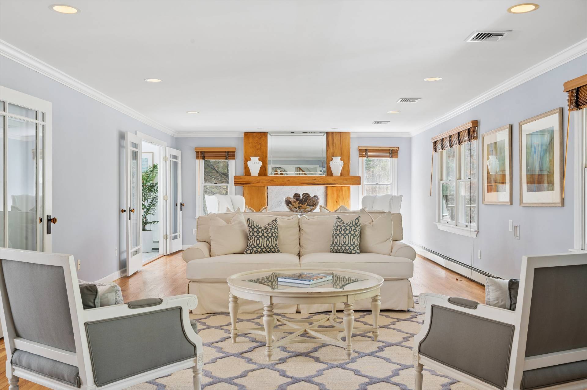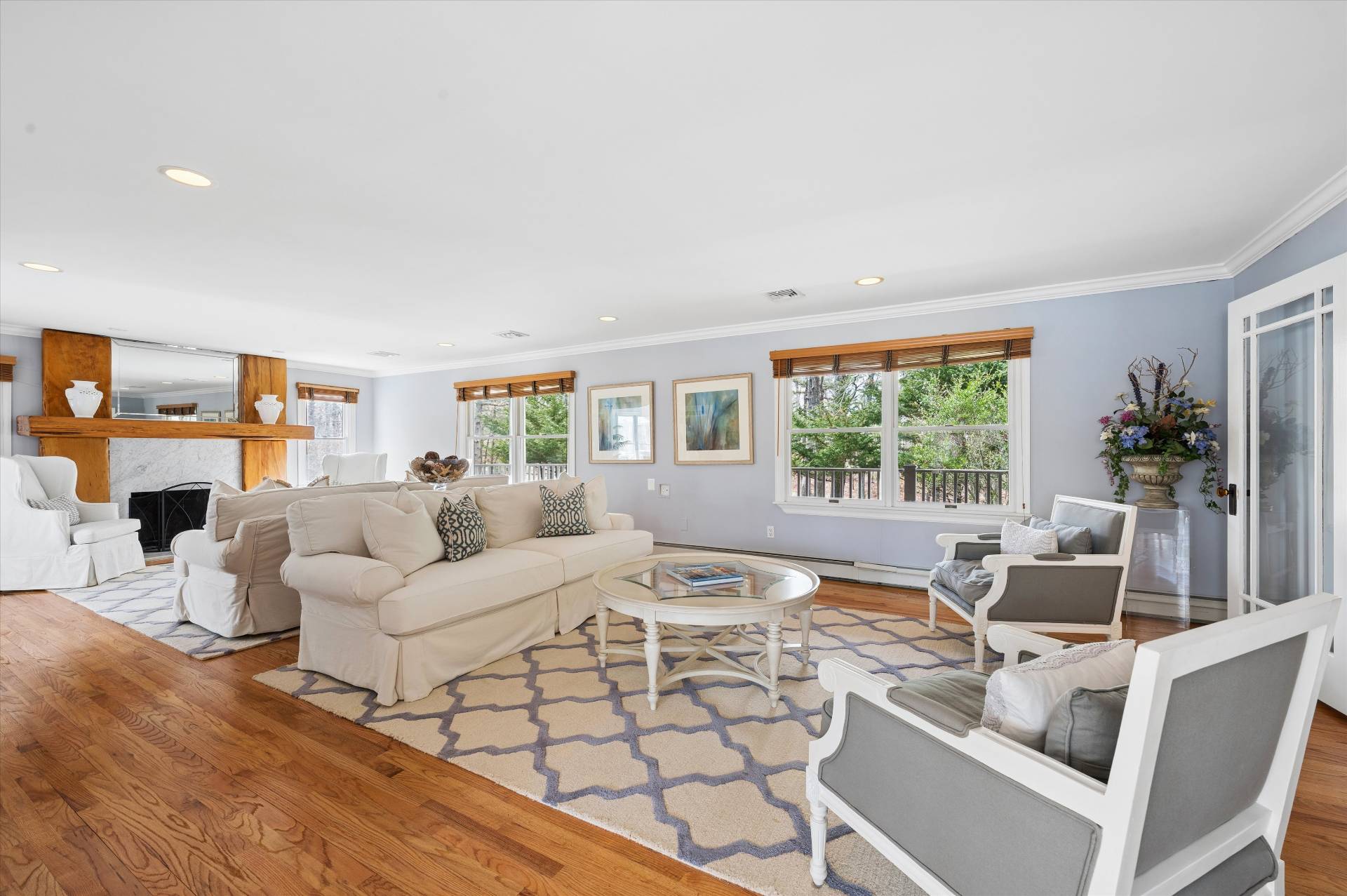Welcome to a beautifully curated, turn-key Farmhouse set on just shy of an acre of lush, private grounds. An expansive front porch sets the tone, offering the perfect place to relax and take in the serene surroundings. Designed for both relaxed living and elegant entertaining, this exceptional home blends timeless charm with modern luxury. The heart of the home is a gourmet kitchen, thoughtfully laid out with high-end appliances and impeccable finishes, perfectly suited for both everyday living and hosting with ease. The inviting living room is anchored by a beautiful fireplace, creating a warm and sophisticated space to gather. Step outside to a stunning backyard retreat-complete with a sparkling pool and an expansive stone patio that creates a true resort-like setting. Whether hosting summer gatherings or enjoying quiet evenings under the stars, this outdoor space is simply unmatched. Inside, the home offers a thoughtfully designed layout with 5 bedrooms and 7 bathrooms, including two luxurious primary suites on the first floor, providing ultimate comfort and flexibility. Every bedroom is ensuite, ensuring privacy and convenience. A fully finished basement with a game room adds an additional level of living and entertainment space, perfect for recreation, hosting, or a private escape. Ideally situated just moments from West Landing Beach, Squire town Park, and Red Creek Pond, and in close proximity to some of the area's most well-known restaurants, this home offers the perfect balance of privacy and convenience. Beautiful finishes, abundant natural light, and impeccable attention to detail carry throughout, making this residence completely move-in ready. A rare offering that embodies effortless elegance, indoor-outdoor living, and the very best of Farmhouse sophistication. * Some Photos Virtually Enhanced