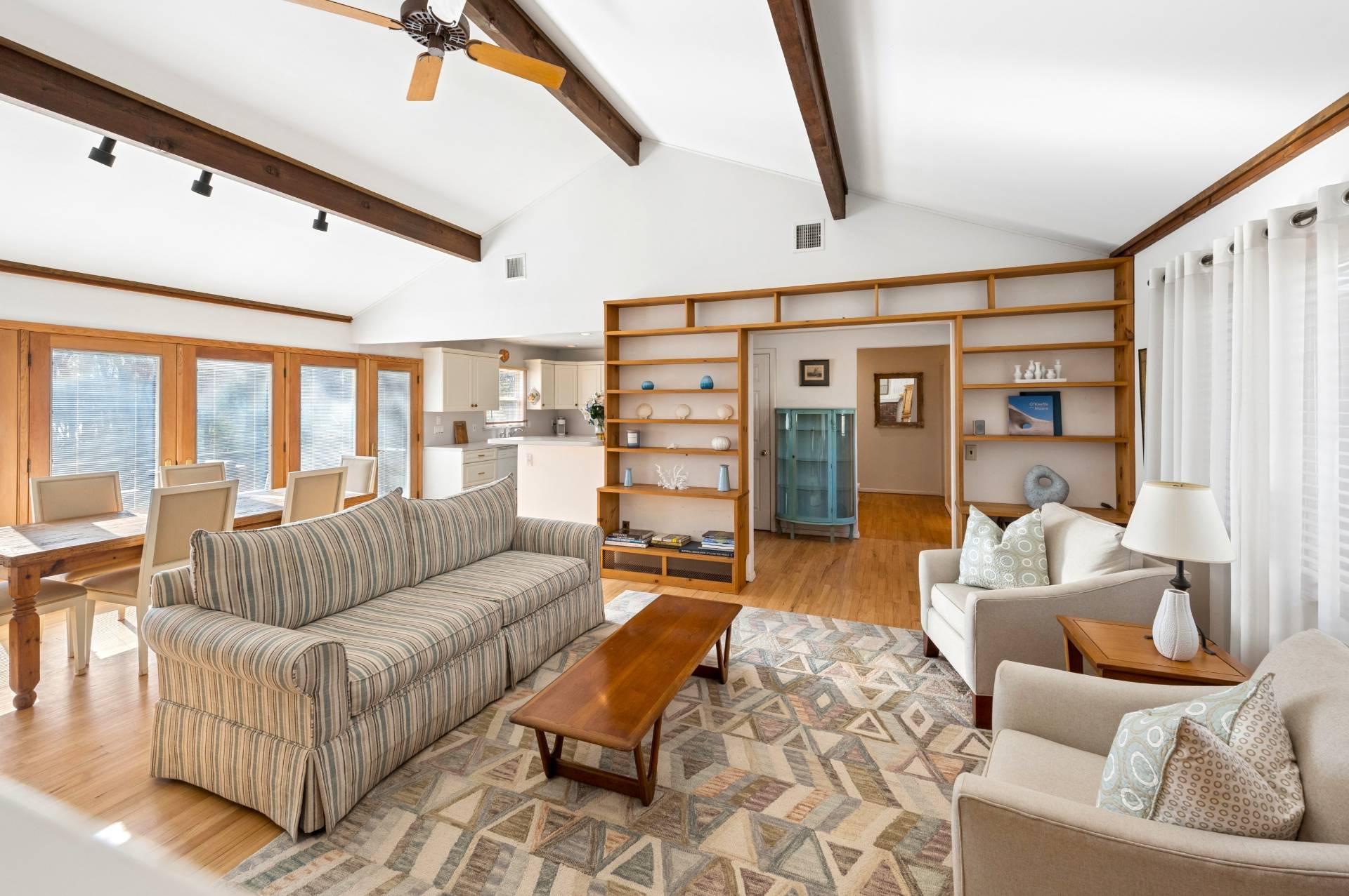 Set on a generous 0.71-acre parcel overlooking Long Pond and bordering a serene reserve, this beautifully maintained 3-bedroom Sag Harbor cottage with a pool offers the perfect blend of privacy and convenience. Designed for easy living and entertaining, the home features a light-filled great room with soaring 13-foot cathedral ceilings, a spacious living area with fireplace and custom built-ins, and a dining room with double French doors that open seamlessly to the backyard. The bright, open kitchen includes a breakfast bar, ideal for casual gatherings. The primary bedroom offers a private half bath, while all three bedrooms are well-proportioned. The lower level presents approximately 1,300 square feet of untapped potential-perfect for creating additional bedrooms, a media room, gym, or wine cellar. Enjoy outdoor living on the expansive back deck with an electric awning, overlooking the pool and peaceful natural surroundings. Additional amenities include an outdoor shower and attached garage. Whether you choose to enjoy the home as is or reimagine it with a renovation or new build, this property offers exceptional opportunity. Ideally located on a quiet cul-de-sac just minutes from Sag Harbor Village shops, restaurants, and marinas, as well as Wolffer Estate Vineyard and fabulous bay and ocean beaches.