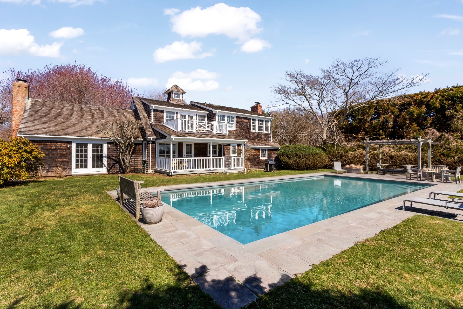 Available for the first time in 35 years, this quintessential SOH Sagaponack farmhouse is both centrally located and beautifully situated, with exceptional southern views of neighboring agricultural reserve. Featuring 4 bedrooms, including large primary suite with private deck and pool/ reserve views, 3 full baths, new chef's kitchen, charming living room with fireplace, and sun-filled great room with two-story ceiling, turn of century English Walnut fireplace, timeless custom cabinetry. Backyard oasis offers covered porch, heated 20*40 gunite pool with bluestone patio, outdoor dining beneath pergola, lovely landscape and forever views. Front yard provides glimpse of the famed Sagaponack School playground, located just around corner from the Sagaponack General Store & Post Office, less than one mile to Sagg Main Beach. Additional amenities include 4 fireplaces, central air. Looking for a charm-filled Hamptons Home reminiscent of yesteryear? Expansion or new build opportunities in a premium Sagaponack South location? Perhaps a little of both? Value accentuated by choice, a wonderful, one of a kind opportunity in today's Sagaponack market, with a zip code that repeatedly ranks Top 5 in the United States.