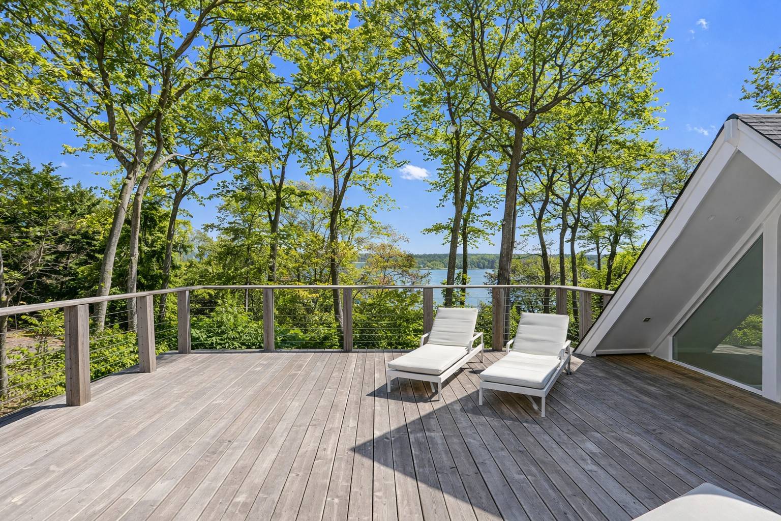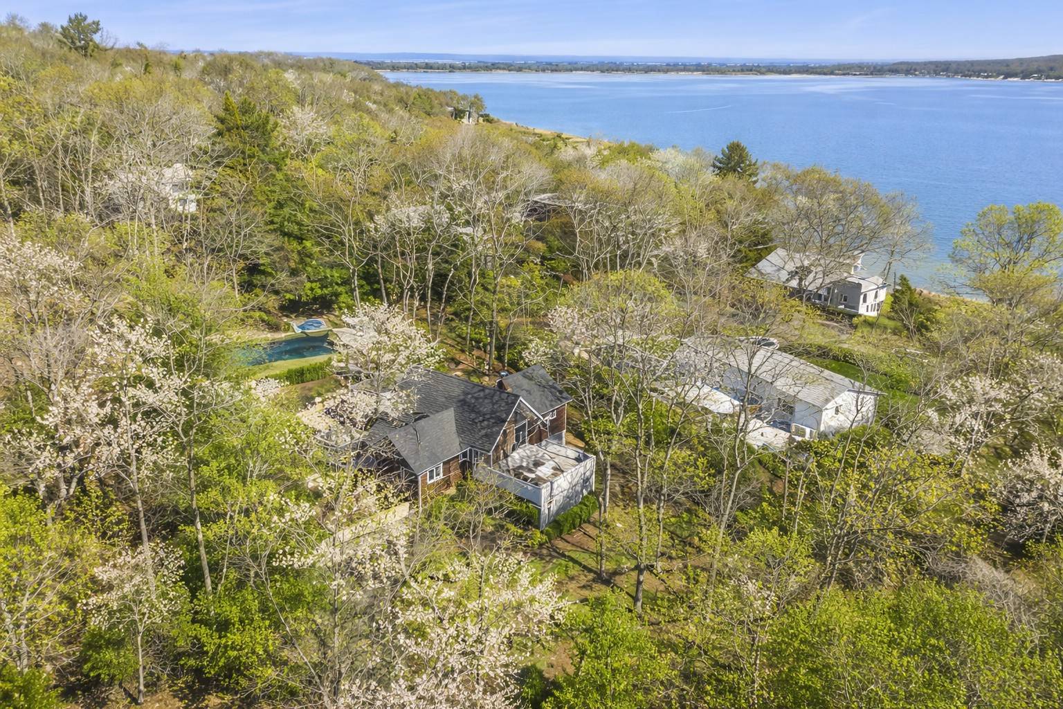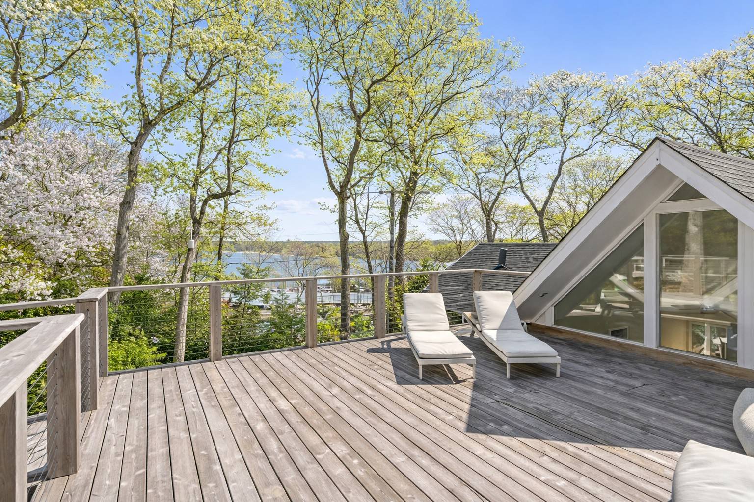 Tucked within Hampton Waters, one of East Hampton's most charming and quietly coveted waterfront enclaves, this renovated A-frame offers a rare blend of architectural character, elevation, and water views. Set on the southwestern shores of Three Mile Harbor, this four-bedroom, three-bath home has been thoughtfully updated to create an effortless, open living experience. Light-filled interiors and a seamless common space anchor the home, designed for both relaxed everyday living and easy entertaining. What truly sets this property apart is the outdoor lifestyle. A series of connected elevated spaces, including a private patio, a raised pool area with water views, and a separate lofted deck connected by a walkway, create multiple vantage points to take in the setting. The elevation offers both privacy and a sense of openness that is increasingly hard to find. Ownership in Hampton Waters extends beyond the home itself. Residents enjoy access to a private community beach, a common green for gatherings, and a bulkheaded dock, perfect for kayaking, paddleboarding, and boating on Three Mile Harbor. All of this, just minutes from ocean beaches, and the villages of East Hampton and Amagansett. A distinctive offering in a truly special waterfront community.