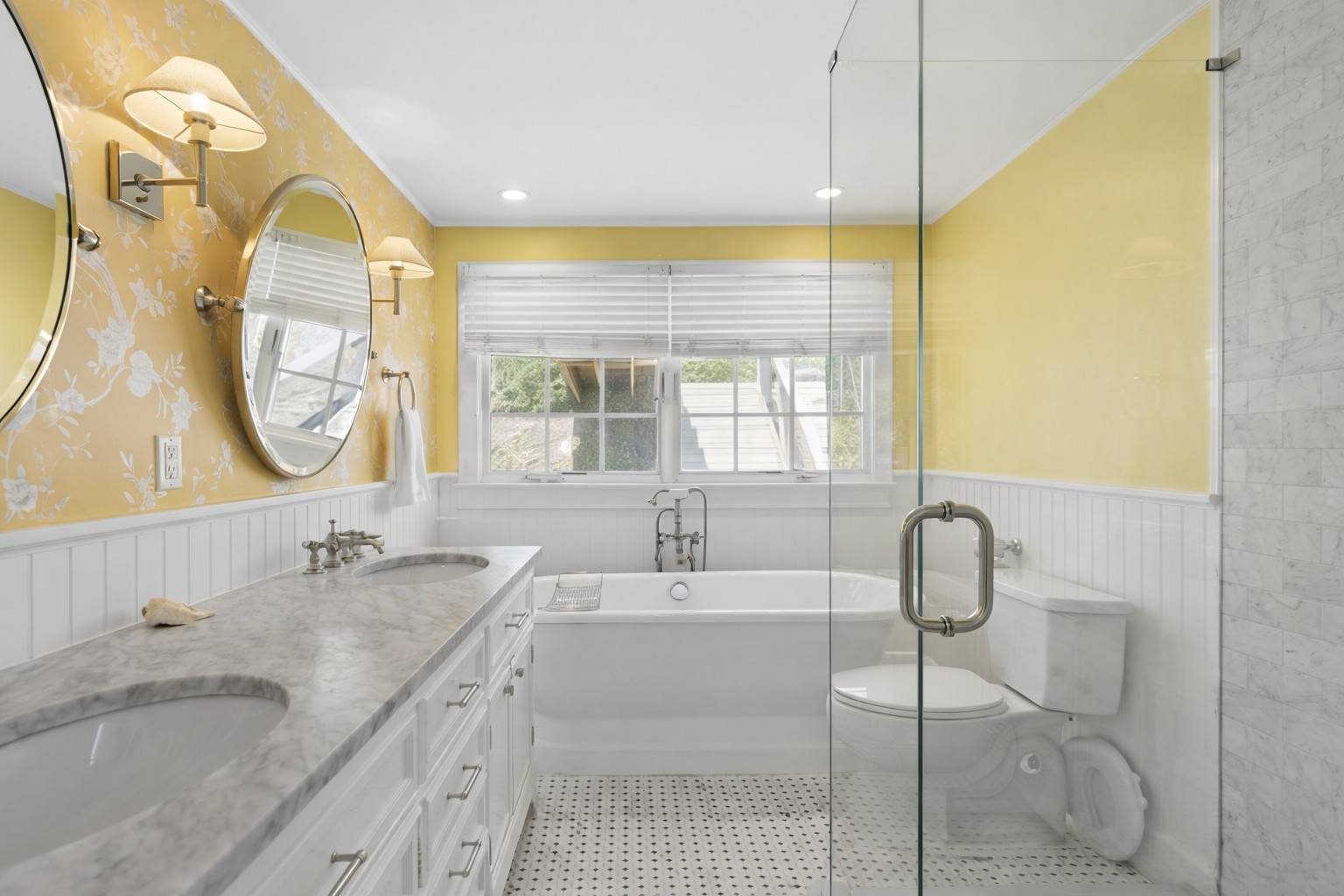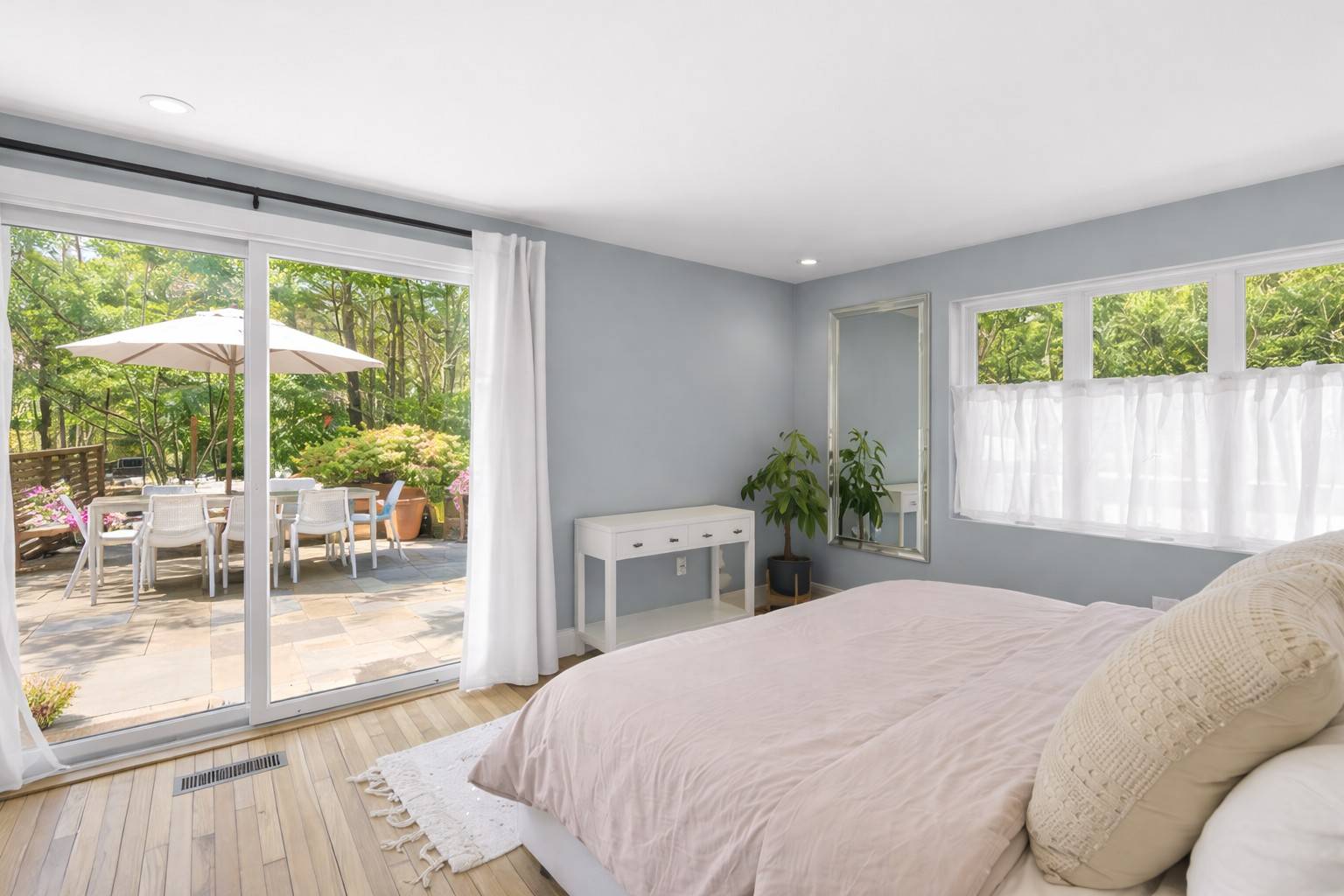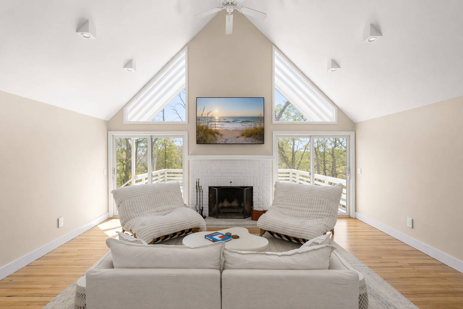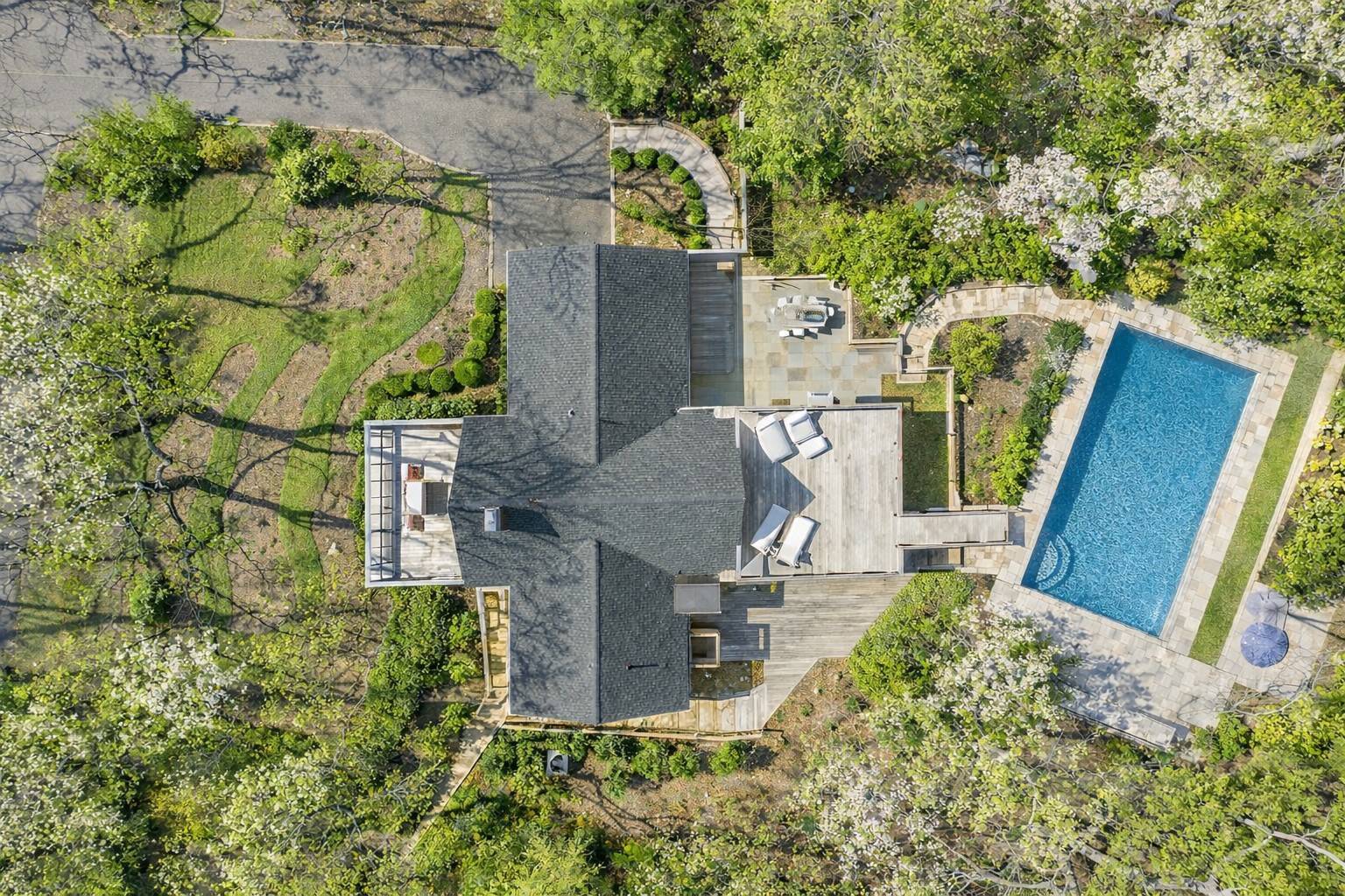 Tucked within Hampton Waters, one of East Hampton's most charming and quietly coveted waterfront enclaves, this renovated A-frame offers a rare blend of architectural character, elevation, and water views. Set on the southwestern shores of Three Mile Harbor, this four-bedroom, three-bath home has been thoughtfully updated to create an effortless, open living experience. Light-filled interiors and a seamless common space anchor the home, designed for both relaxed everyday living and easy entertaining. What truly sets this property apart is the outdoor lifestyle. A series of connected elevated spaces, including a private patio, a raised pool area with water views, and a separate lofted deck connected by a walkway, create multiple vantage points to take in the setting. The elevation offers both privacy and a sense of openness that is increasingly hard to find. Ownership in Hampton Waters extends beyond the home itself. Residents enjoy access to a private community beach, a common green for gatherings, and a bulkheaded dock, perfect for kayaking, paddleboarding, and boating on Three Mile Harbor. All of this, just minutes from ocean beaches, and the villages of East Hampton and Amagansett. A distinctive offering in a truly special waterfront community.