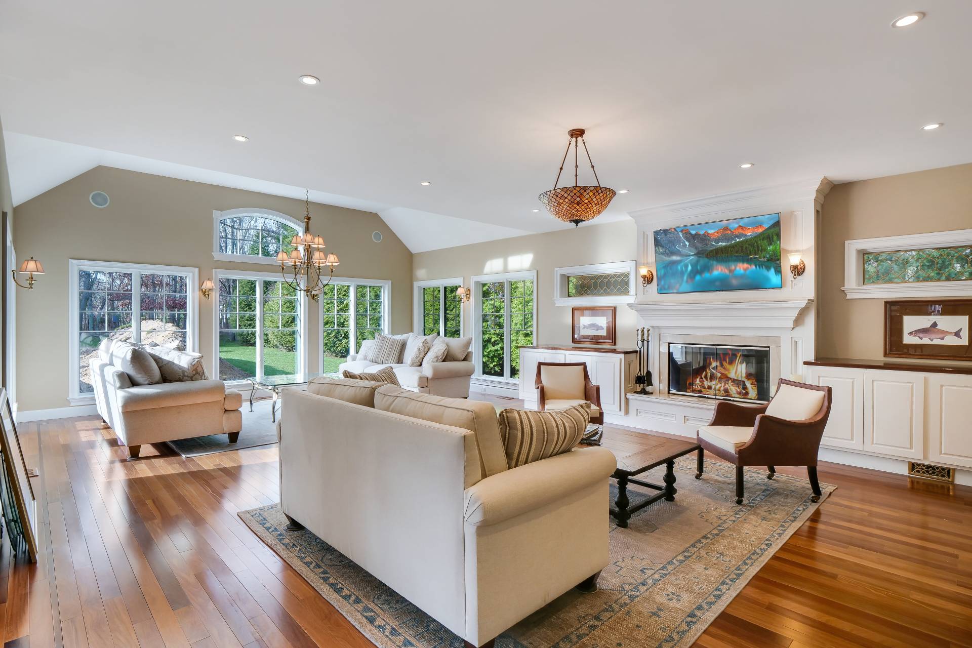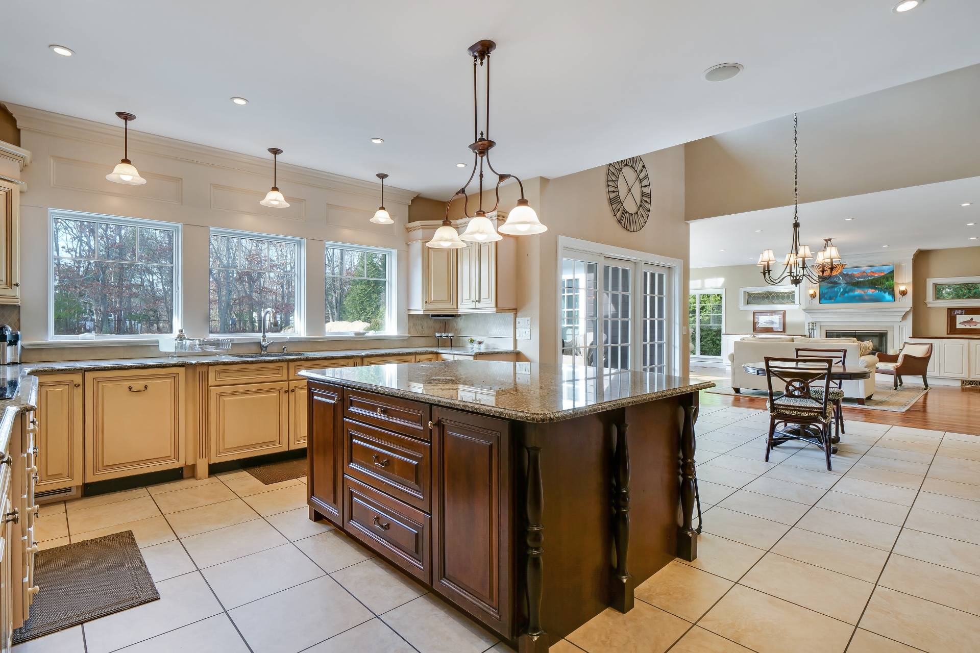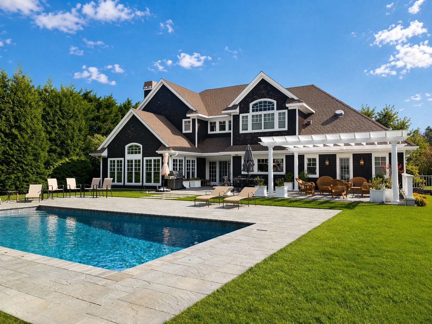 Set on a quiet cul-de-sac in Quogue, this spacious 5-bedroom, 6-bath home offers an airy layout perfect for relaxed living and effortless entertaining. The main level features a welcoming foyer, formal dining room, open kitchen, and an oversized living room with fireplace, along with a first-floor primary suite complete with a marble bath and soaking tub. Upstairs, a second primary suite boasts soaring ceilings, a fireplace, and a spa-like bath, joined by a guest suite and two additional bedrooms with a shared bath. The finished lower level provides additional 2000SF with a full bath, generous entertainment space, utility and storage areas, and walk-out egress. Additional amenities include 2 laundry rooms, an attached 2-car garage, and framing in place for a future elevator. Outside enjoy a new heated gunite pool, slate patio, a wide back lawn, and access to a neighborhood pond stocked with fish. Just minutes from village shops, transportation, and pristine beaches, this is Hamptons living at its best.