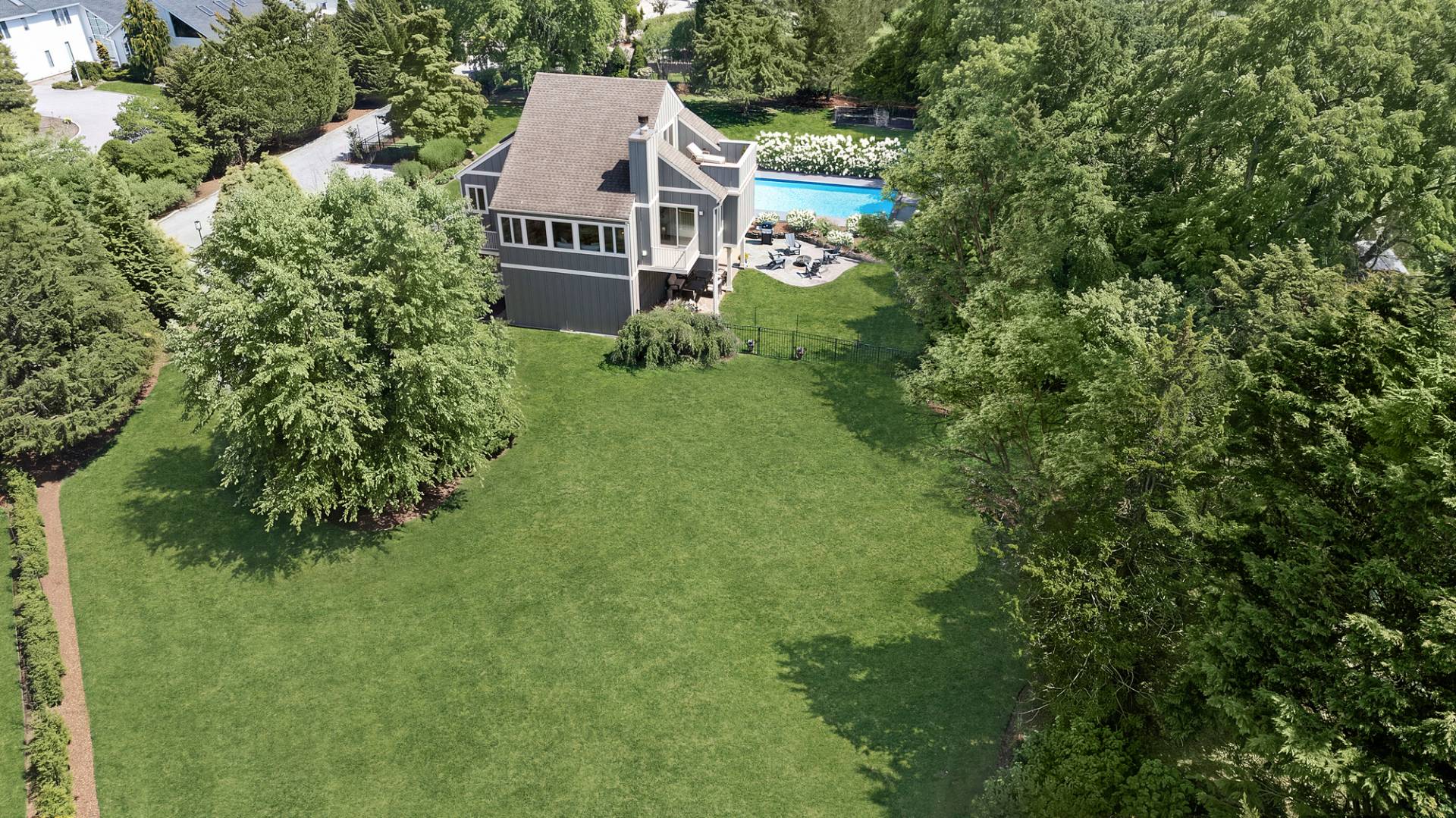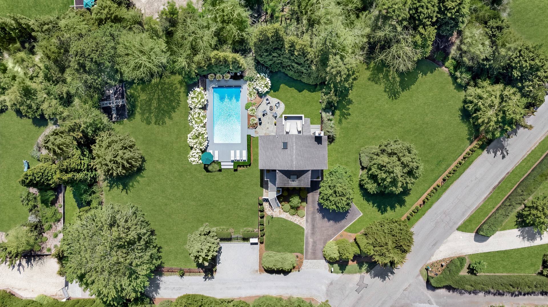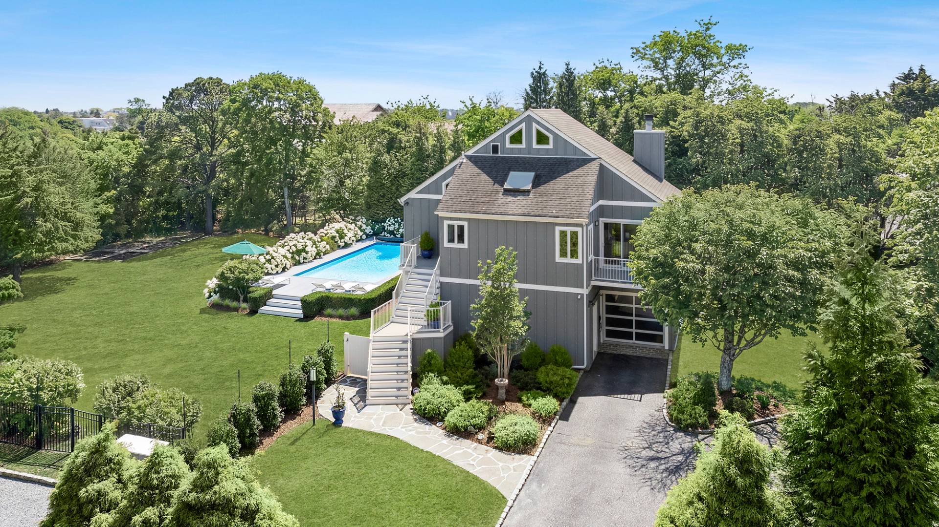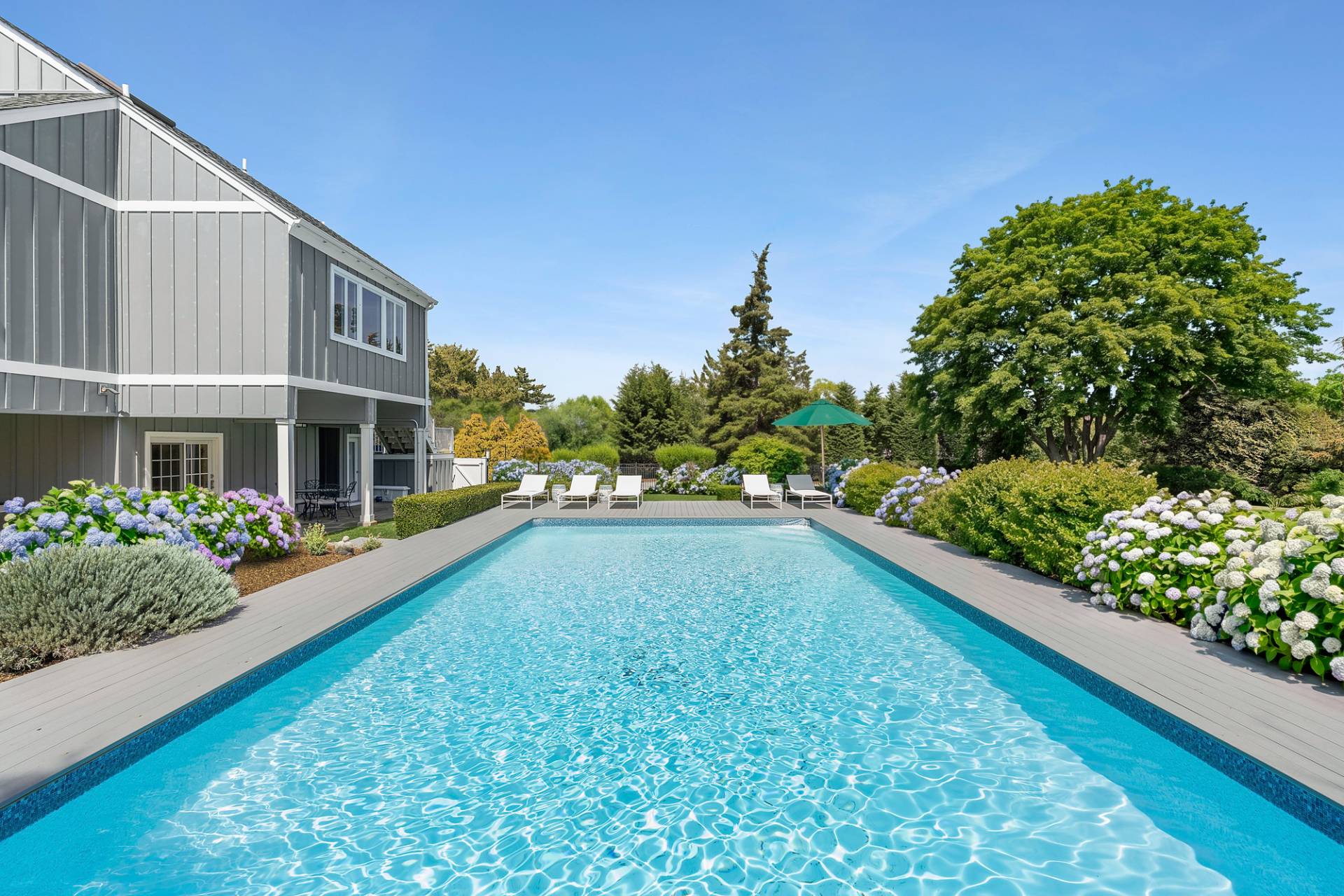 Situated on prestigious Meadow Lane, in the coveted Westhampton Beach Estate Section, this turn-key residence offers 2,402 SF of living space with 3 bedrooms and 3 full bathrooms, set on a beautifully landscaped acre. The property provides exceptional privacy and serenity, ideally located just 0.5 miles to Main Street and 1.3 miles to Dune Road-offering the rare combination of convenience and coastal tranquility, with the ocean close enough to hear at night. The home showcases soaring A-frame ceilings, exposed beams, and an abundance of natural light throughout. The main level welcomes you with hardwood flooring and a well-appointed kitchen featuring corian countertops, stainless steel appliances, and premium finishes, including a GE Profile 5-burner electric range with warming drawer, Bosch dishwasher, Whirlpool built-in microwave, and GE refrigerator. The adjacent living room is anchored by a wood-burning fireplace and opens to a front balcony through sliding glass doors, creating a seamless indoor-outdoor flow. Two generously sized bedrooms are located on this level, including one with three closets and direct access to a side deck, as well as a second bedroom overlooking the backyard and pool. A full hall bathroom with a tub/shower combination and a linen closet complete the floor. The upper level is dedicated to a private primary suite, offering a tranquil retreat with its own deck, skylight, walk-in closet, and custom built-in storage. The spa-inspired en-suite bath features a walk-in shower with river rock flooring, dual shower heads, a bench, and mirrored cabinetry, while pocket doors enhance both functionality and design. The lower level adds versatility with tiled flooring, a full bathroom, sliding glass doors to the backyard, and a convenient laundry closet. Outdoors, the fully deer-fenced property is designed for both relaxation and entertaining, with a bluestone patio, raised vegetable garden beds, and Trex decking surrounding the heated saltwater pool, all framed by raised beds home to lush, mature landscaping including hydrangeas, rhododendrons, hosts lilies, and crape myrtle. Additional features include full-property irrigation, durable Hardie board siding, an alarm system, exterior cameras, a Tesla charger, and multiple storage spaces. The home is also equipped with geothermal heating and central air conditioning, delivering efficient year-round comfort. 4 Meadow Lane presents a rare opportunity to own in one of the Hamptons' most desirable village locations-just moments from Main Street's shops and restaurants, the Westhampton Beach Performing Arts Center, and pristine ocean beaches. Whether as a year-round residence or a seasonal retreat, this property truly captures the essence of Hamptons living.